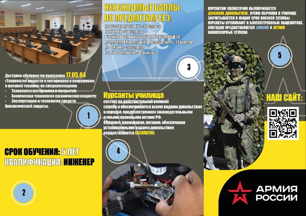 Информация для выпускников и родителей! Саратовское высшее военное инженерное училище РХБЗ осуществляет подготовку офицеров-специалистов в области радиационной, химической и биологической безопасности не только для всех видов Вооруженных Сил и родов войск, но и других министерств и ведомств, в которых предусмотрено прохождение военной службы.Дополнительная информация о Саратовском высшем военном инженерном училище и правилах приема на обучение размещена на официальном сайте https://svviu.mil.ru в разделе «Поступающим».