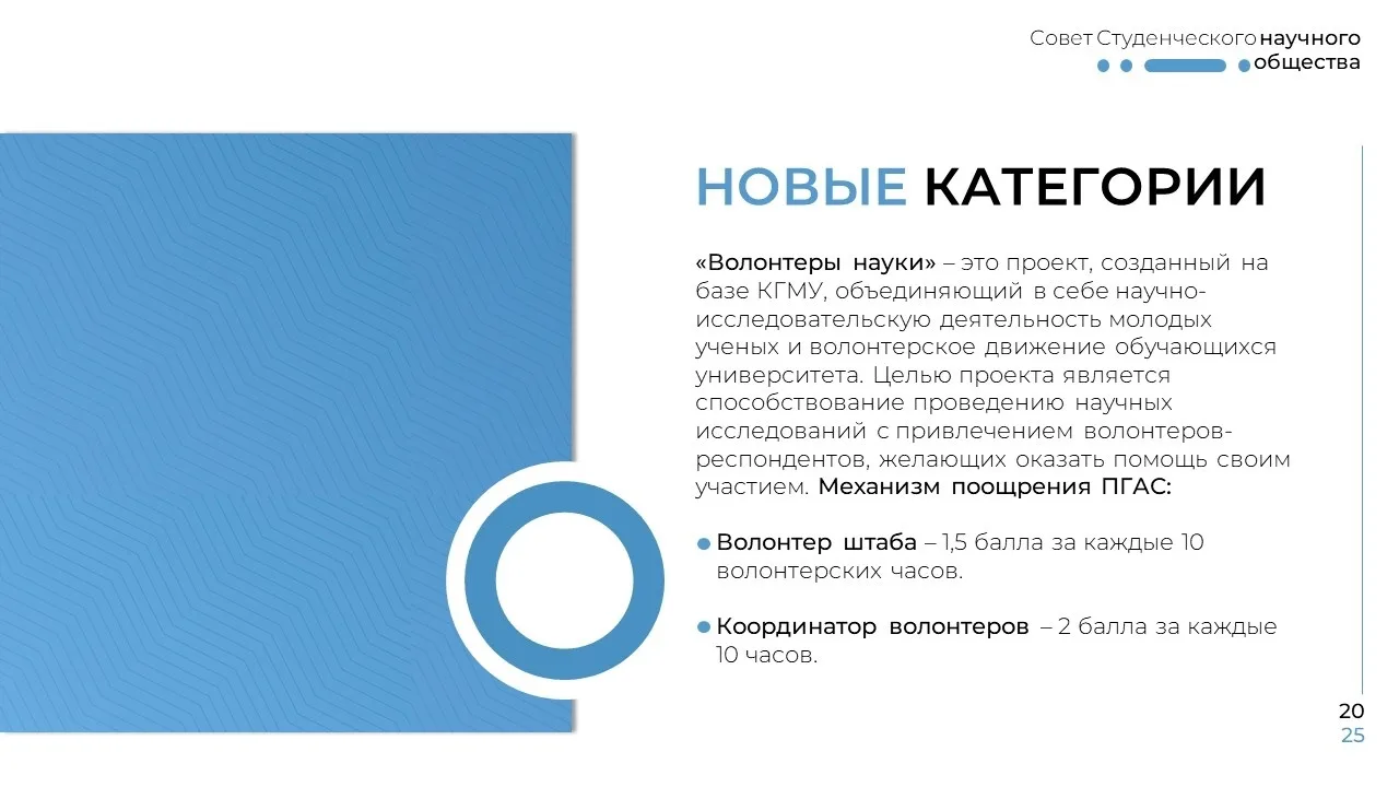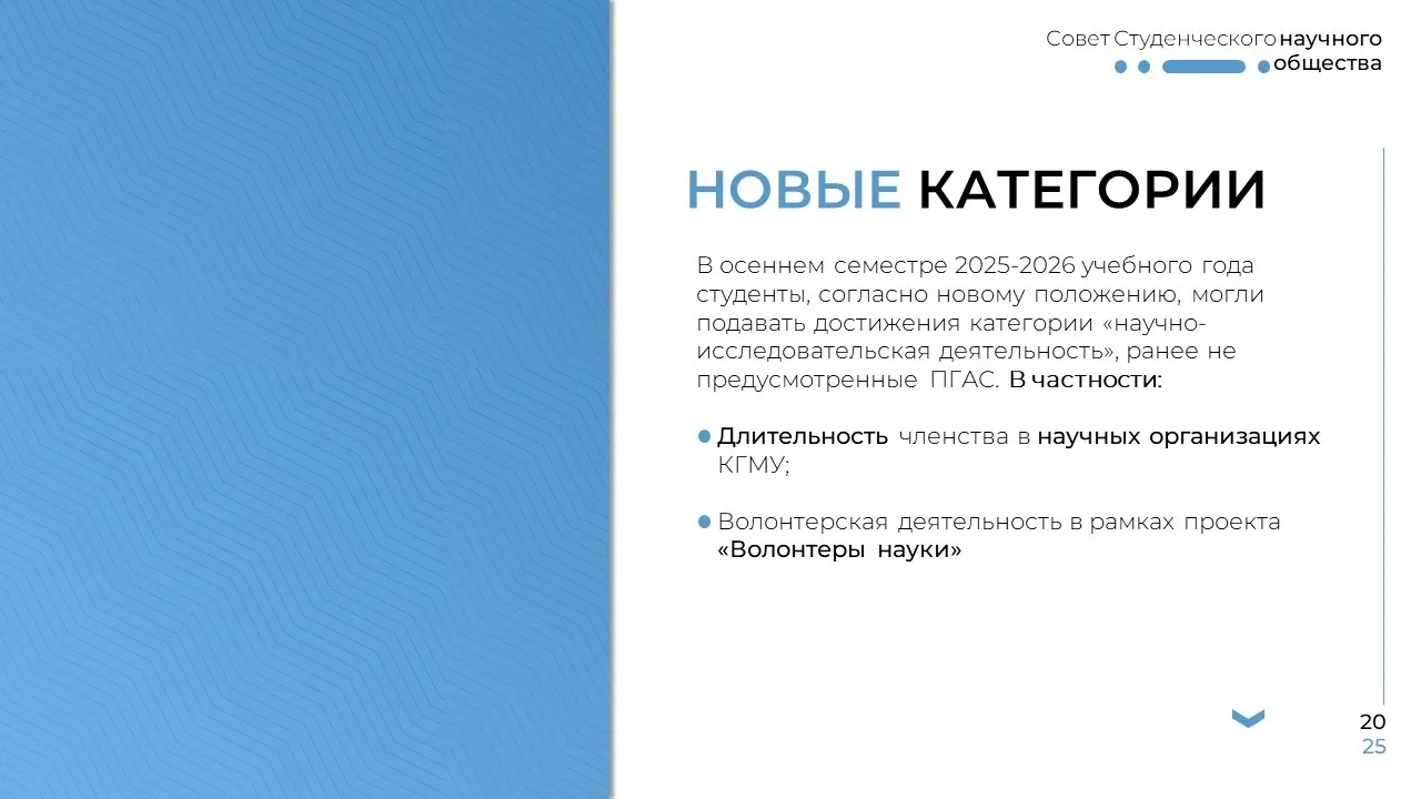 Расширен список достижений, которые официально учитываются в категории «Научно-исследовательская деятельность». Активная организационная и волонтёрская работа в науке тоже заслуживает баллов!