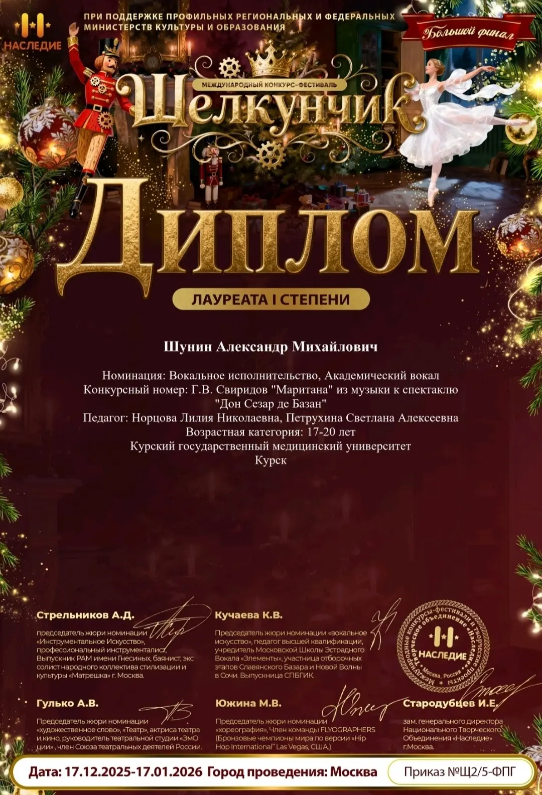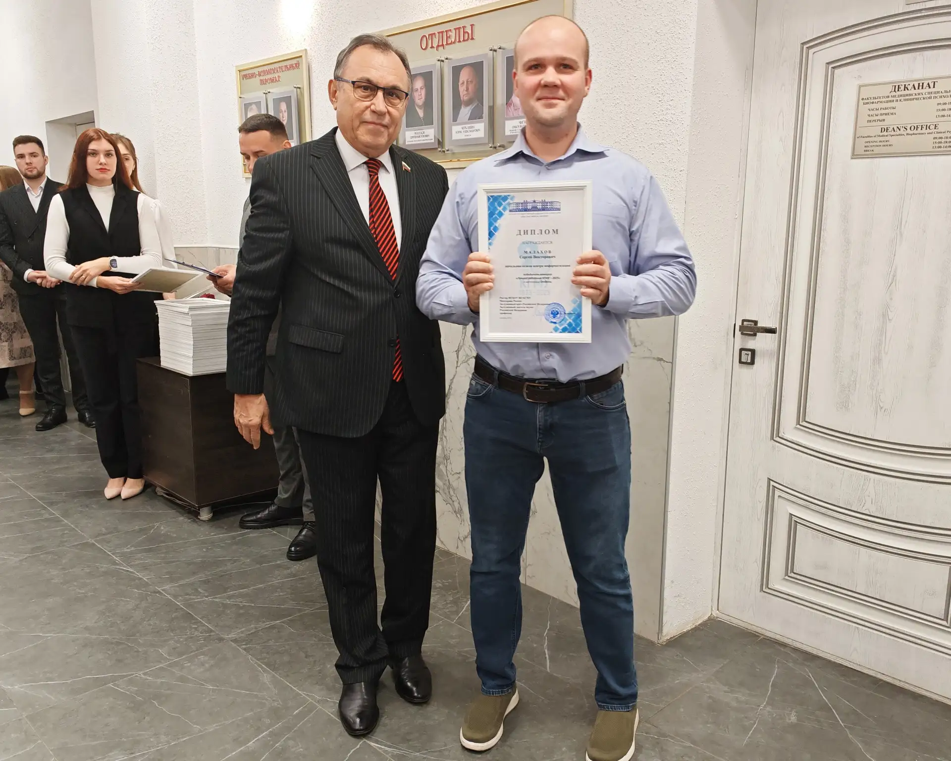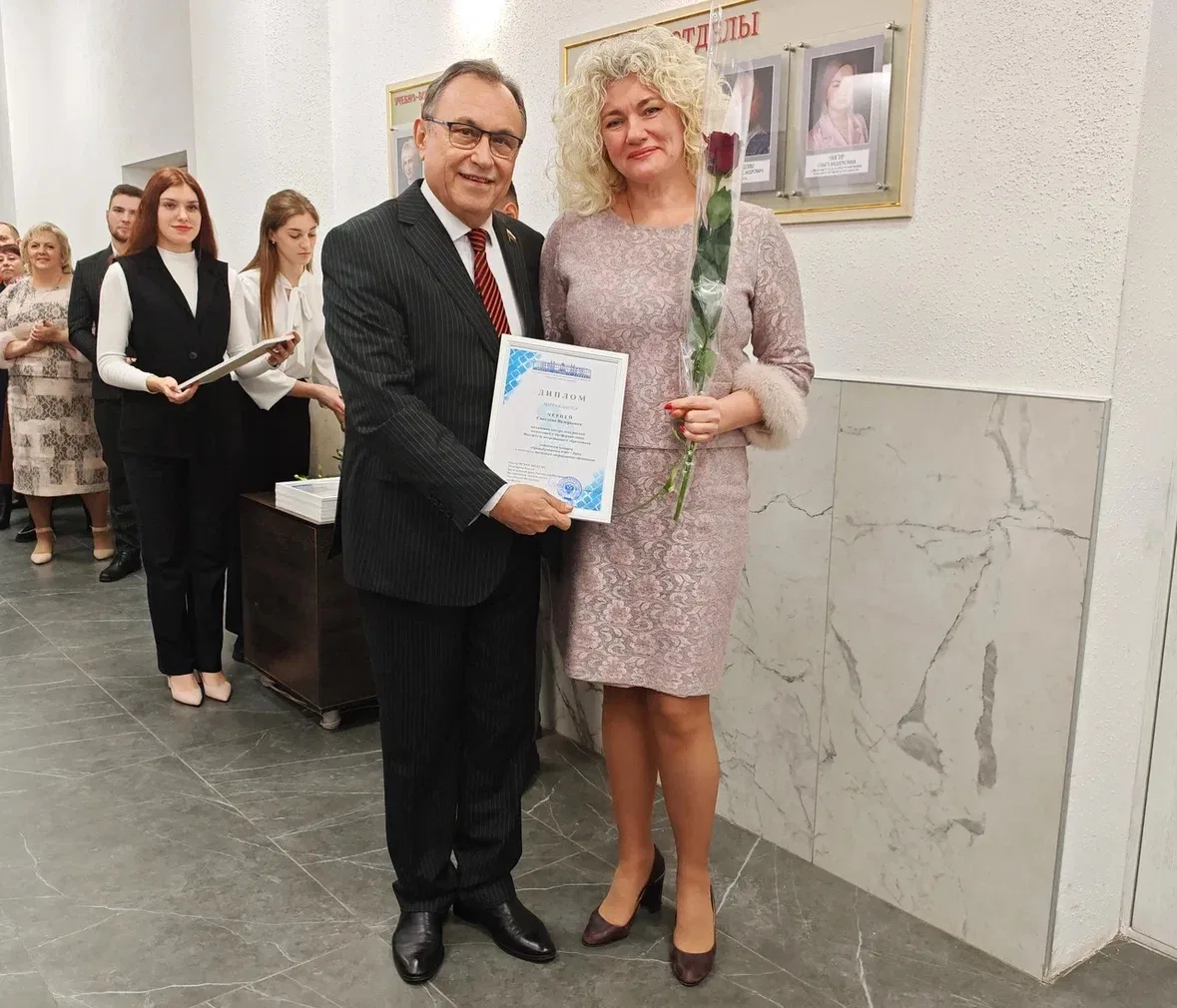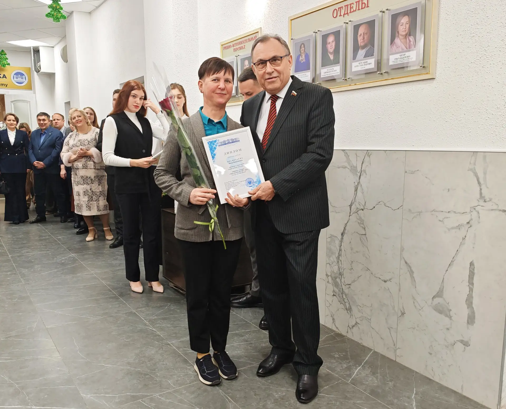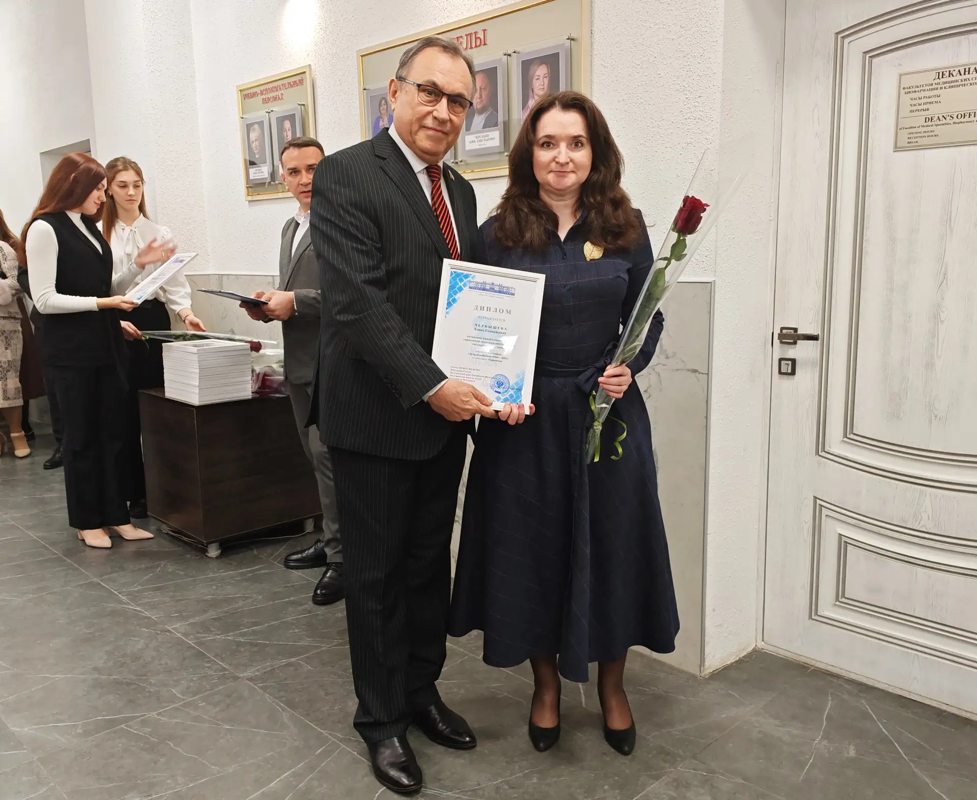 Победителей, проявивших себя в различных профессиональных номинациях, лично поздравил ректор университета, профессор В.А. Лазаренко. Каждому из них был вручён памятный диплом — официальное признание вклада в общее дело и символ высочайшего профессионализма.
