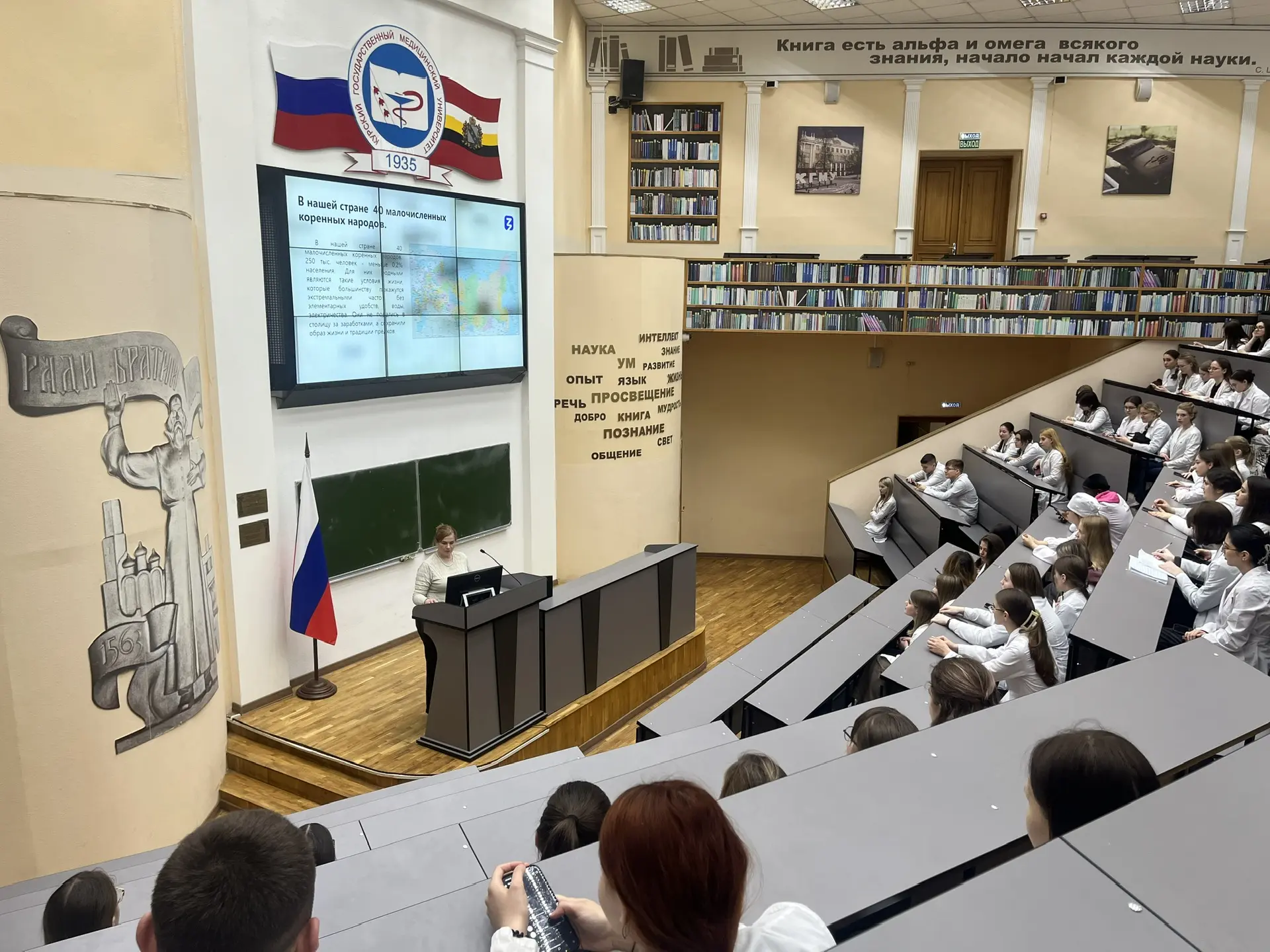 В Курском государственном медицинском университете состоялась яркая просветительская встреча — открытая лекция доктора исторических наук, заведующей кафедрой философии Е.С. Кравцовой. Мероприятие под названием «Сокровища культурного многообразия: коренные малочисленные народы России» было посвящено этносам Севера, Сибири и Дальнего Востока.