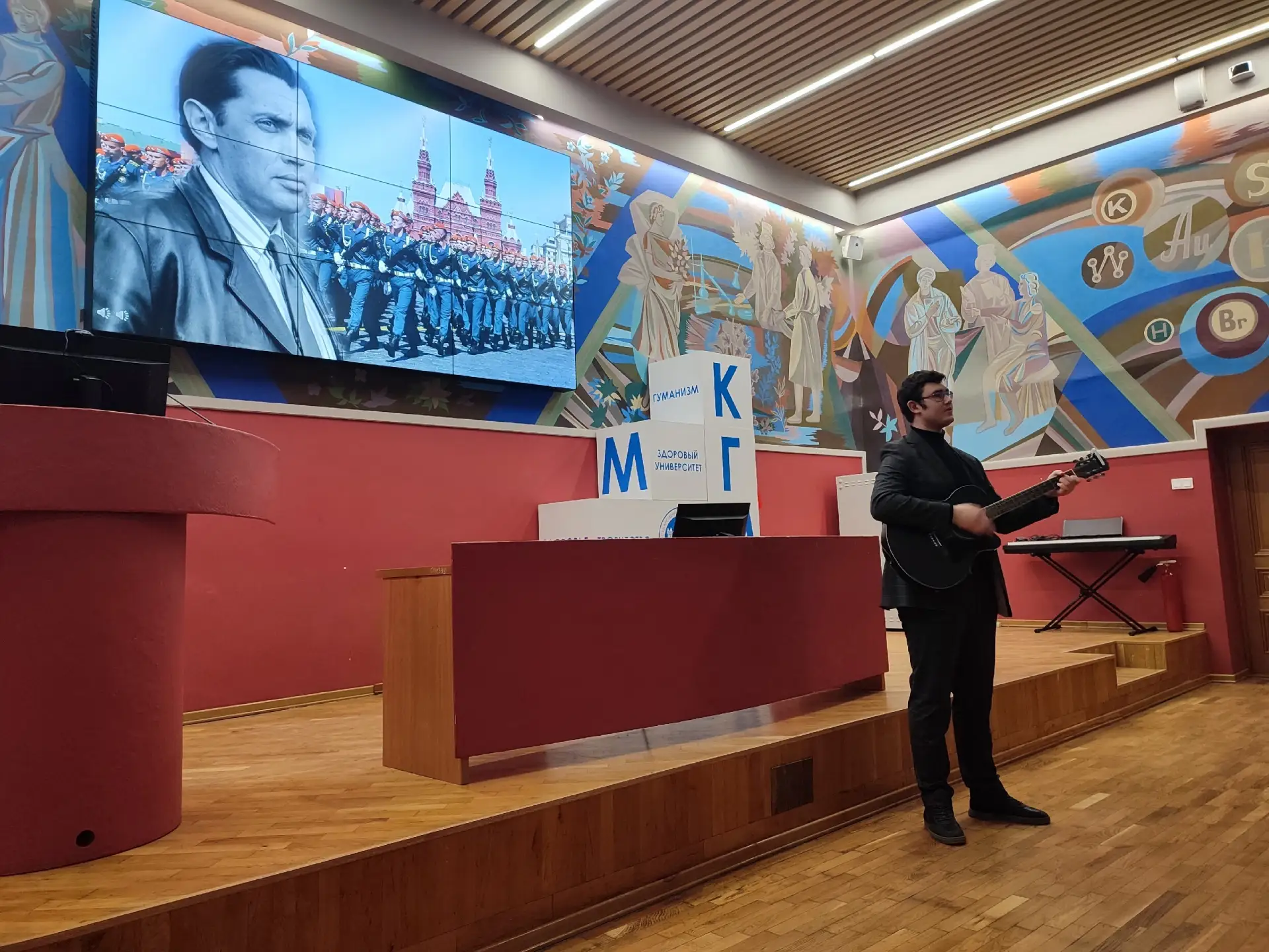 💥Праздник начался с душевной ноты: прозвучала песня, посвящённая легенде мирового космоса – Юрию Гагарину. Эта композиция сразу задала торжественный и вдохновляющий тон всему мероприятию.