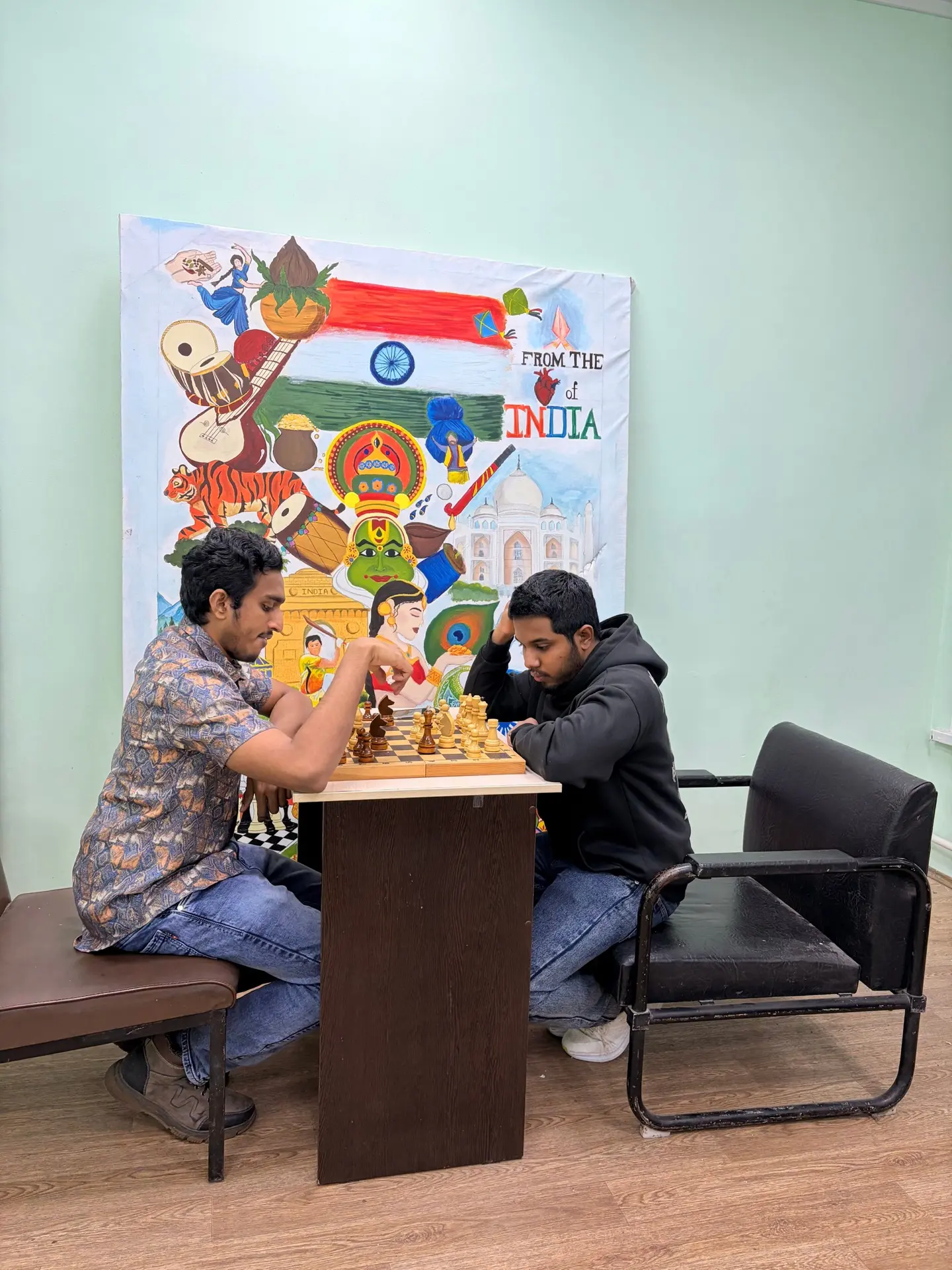 Творчество плавно перетекло в тёплое чаепитие, где за одним столом встретились традиционные русские угощения и восточные сладости. А пока одни обменивались впечатлениями, другие состязались в тишине и сосредоточенности за шахматными досками в рамках настоящего международного турнира.
