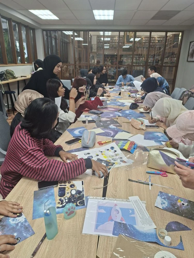 В преддверии Дня космонавтики в междисциплинарном читальном зале университетской библиотеки, который на время превратился в арт-мастерскую. студенты ММИ КГМУ создали крафтовые открытки на тему космоса. На открытках «оживали» звёздное небо, серебристые ракеты, улыбающиеся луноходы и фигурка космонавта, парящего в невесомости.