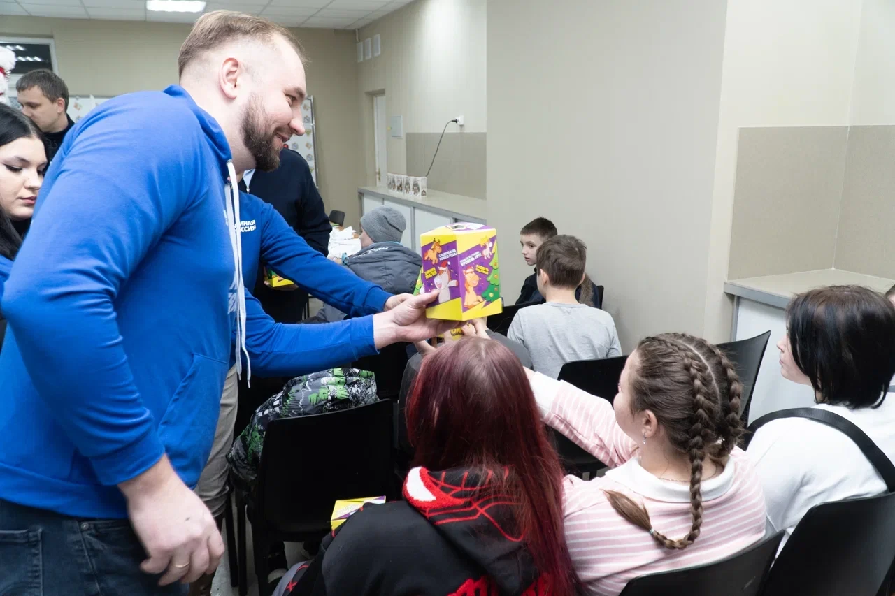 🎅 После тёплых слов и поздравлений детям, проживающим в пункте временного размещения, вручили сладкие подарки, а активисты Молодой Гвардии поиграли с ребятами, создав настоящую новогоднюю атмосферу радости и движения 🎉