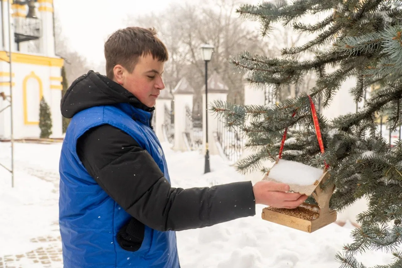 Участники акции наполнили кормушки, расположенные в студенческом городке университета и на территории Храма Царственных Страстотерпцев.