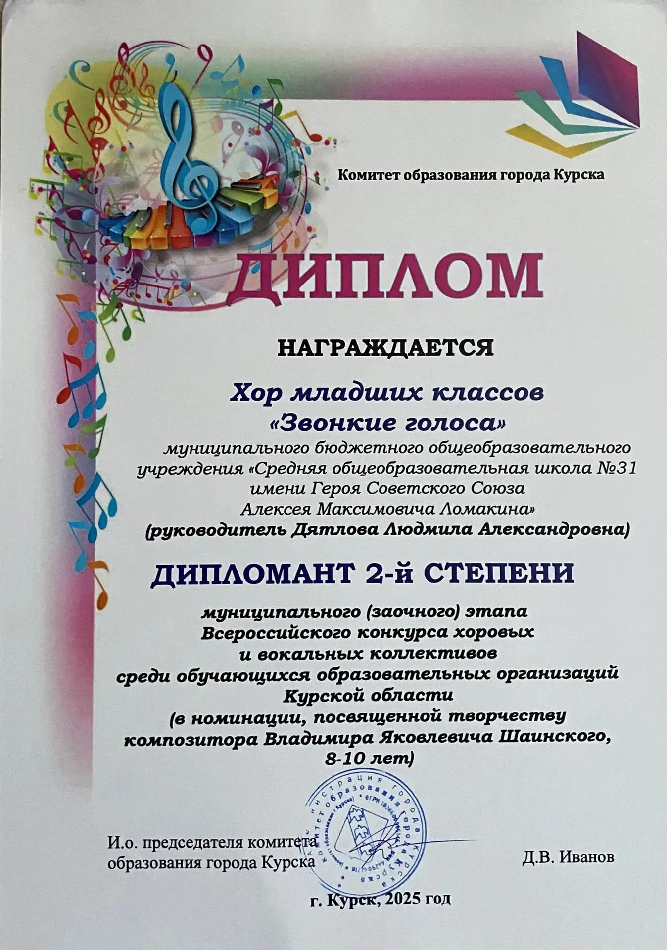С 13 ноября по 3 декабря 2025 года проходил муниципальный (заочный) этап Всероссийского конкурса хоровых и вокальных коллективов среди обучающихся образовательных организаций г. Курск.