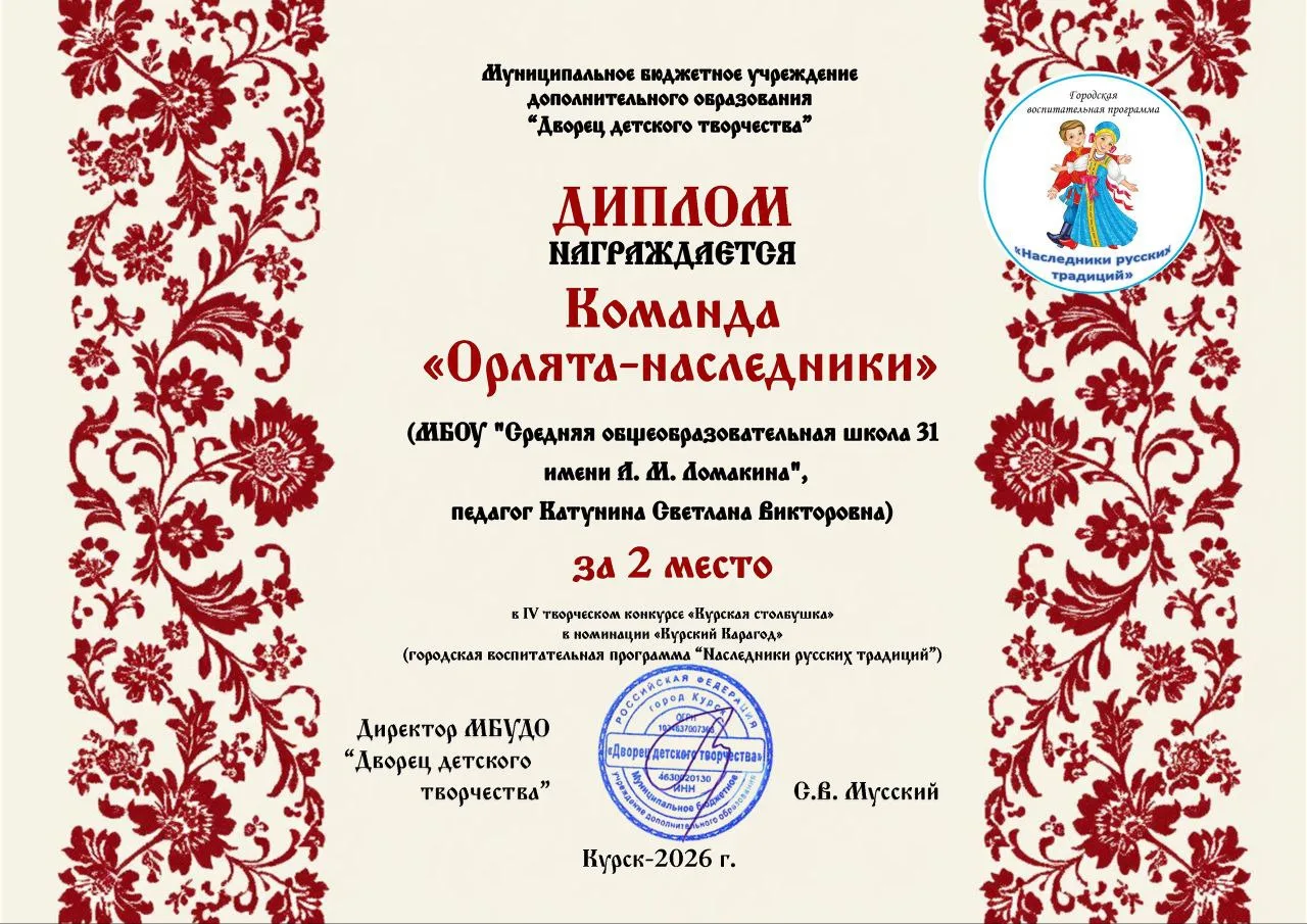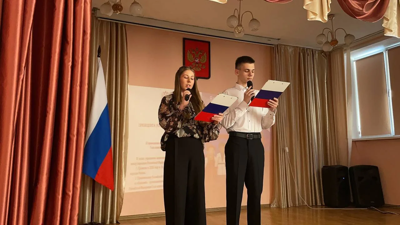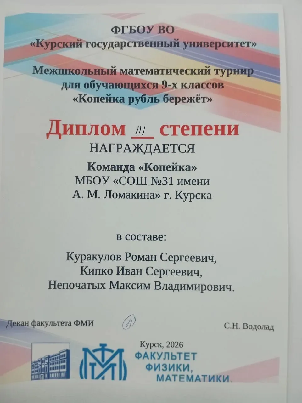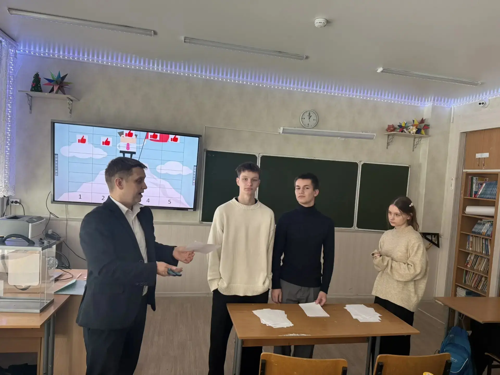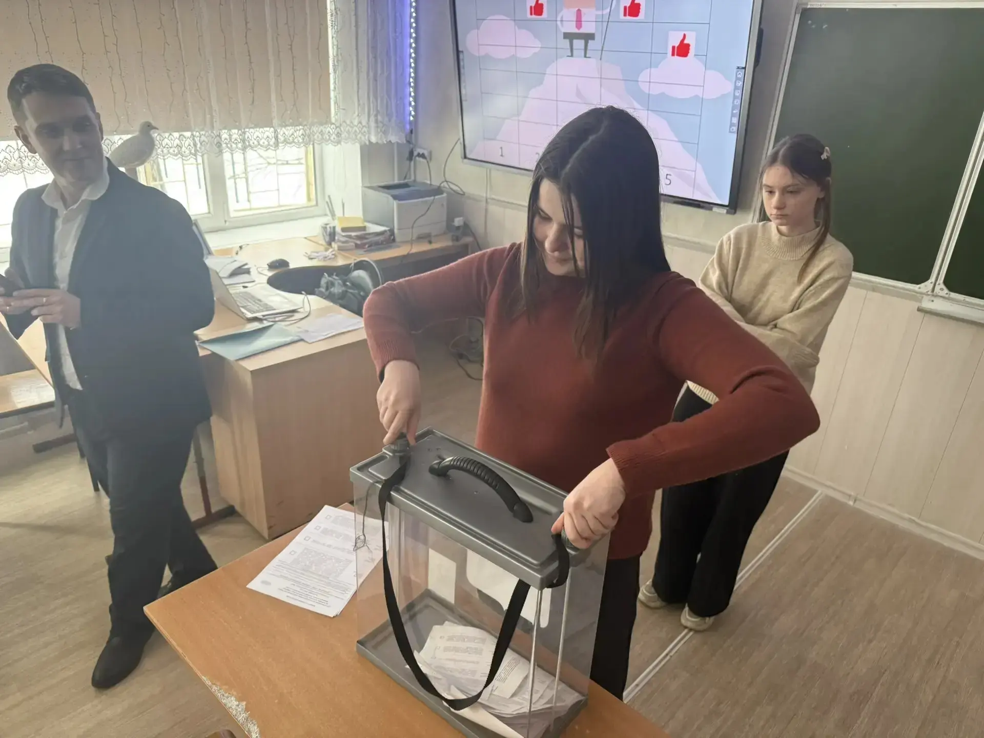 состоялась 5-я школа молодого избирателя. Представители МБОУ «Средняя общеобразовательная школа №31 имени А.М.Ломакина» Ищенко Арина и Раздобарина Алиса представили вариант эмблемы избирательной кампании 2026 года в Курской области, разработанной командой 10 Б класса.