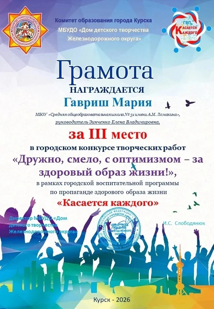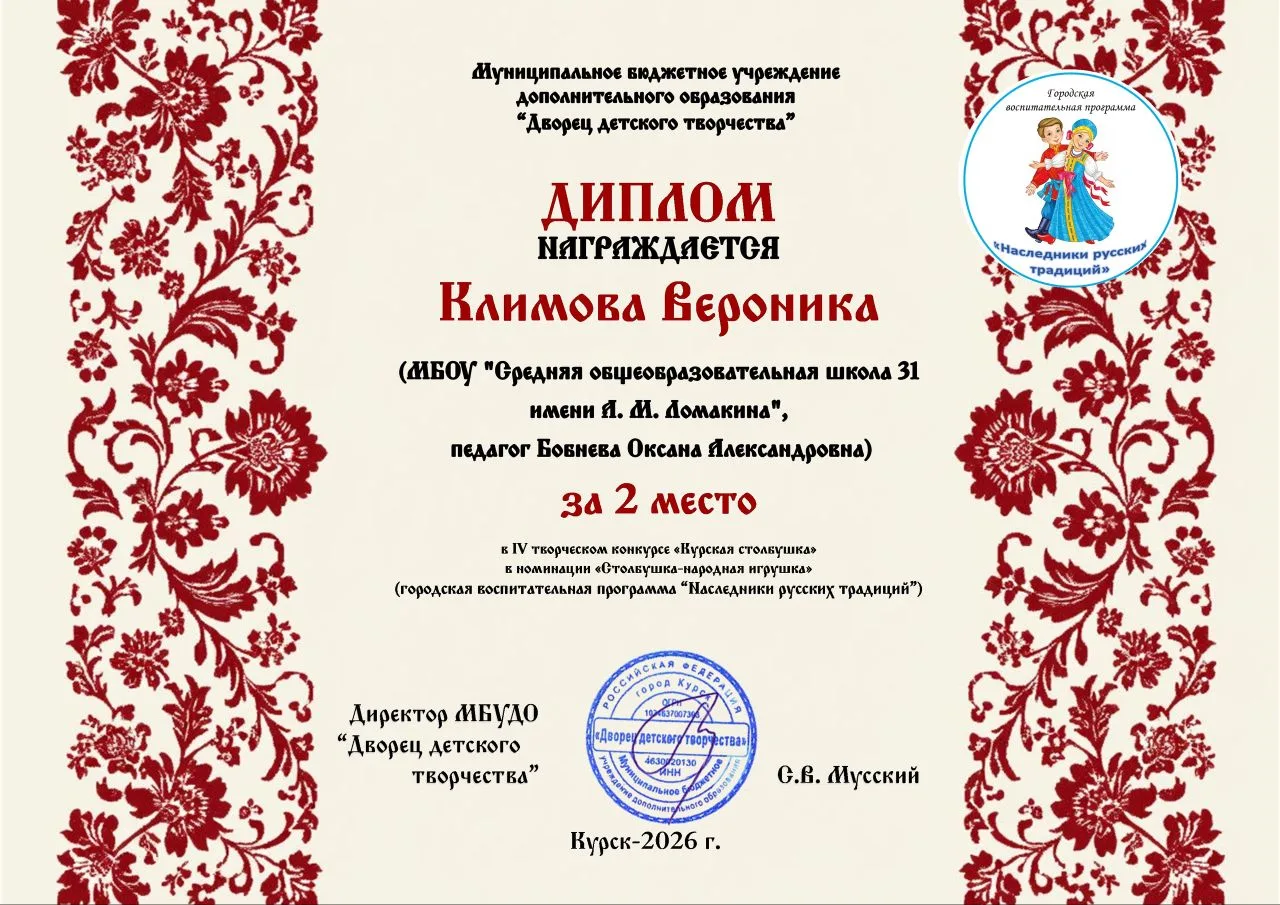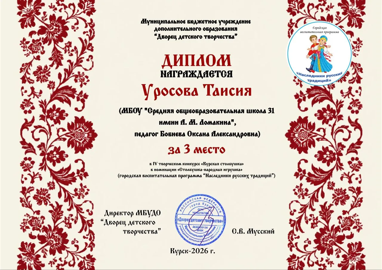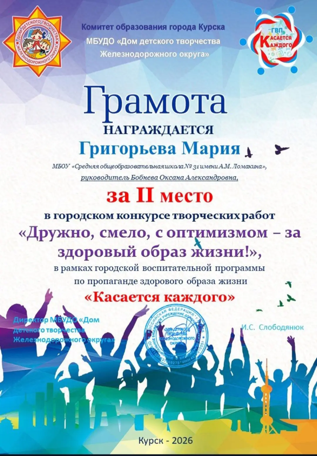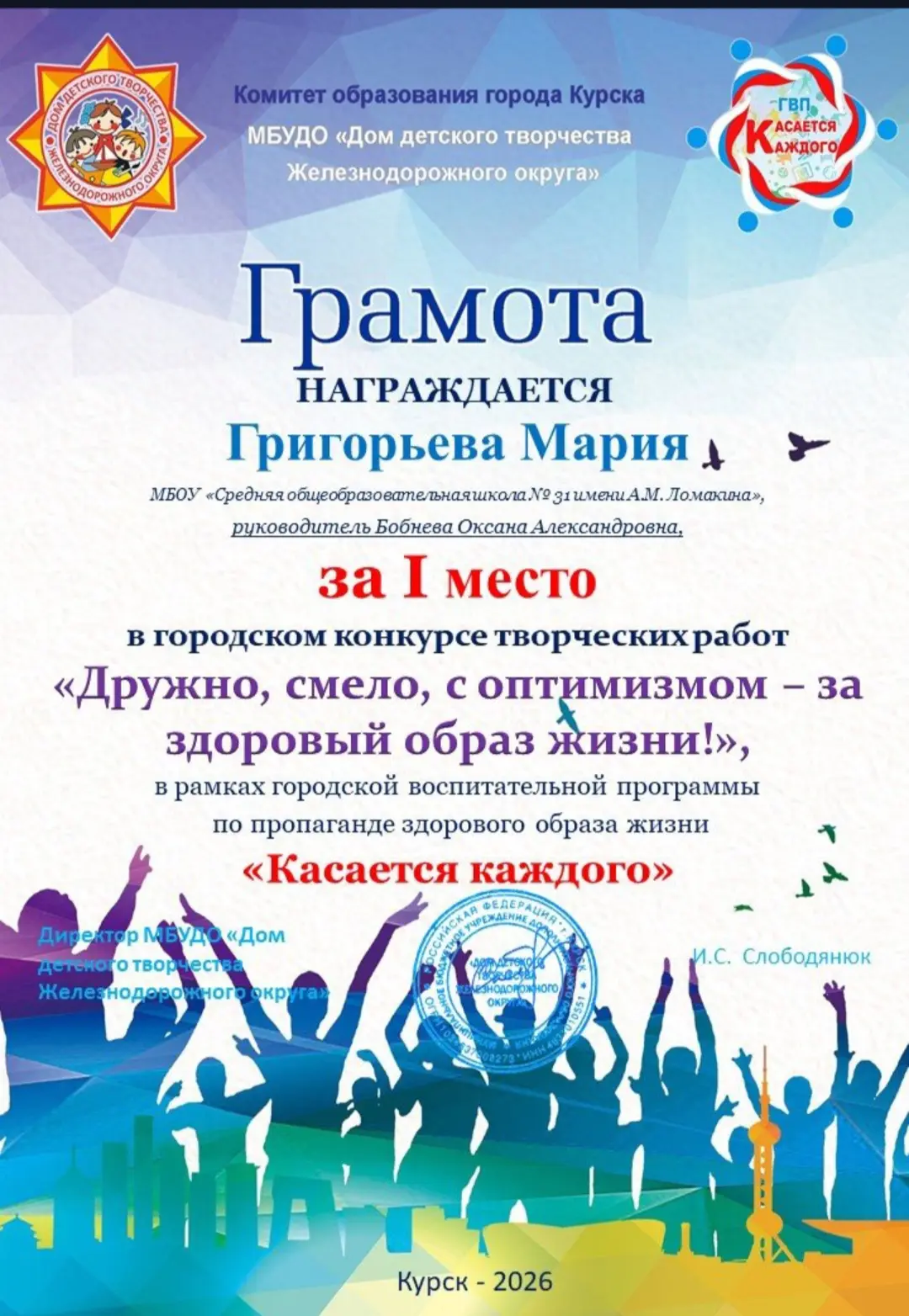 состоялась 5-я школа молодого избирателя. Представители МБОУ «Средняя общеобразовательная школа №31 имени А.М.Ломакина» Ищенко Арина и Раздобарина Алиса представили вариант эмблемы избирательной кампании 2026 года в Курской области, разработанной командой 10 Б класса.