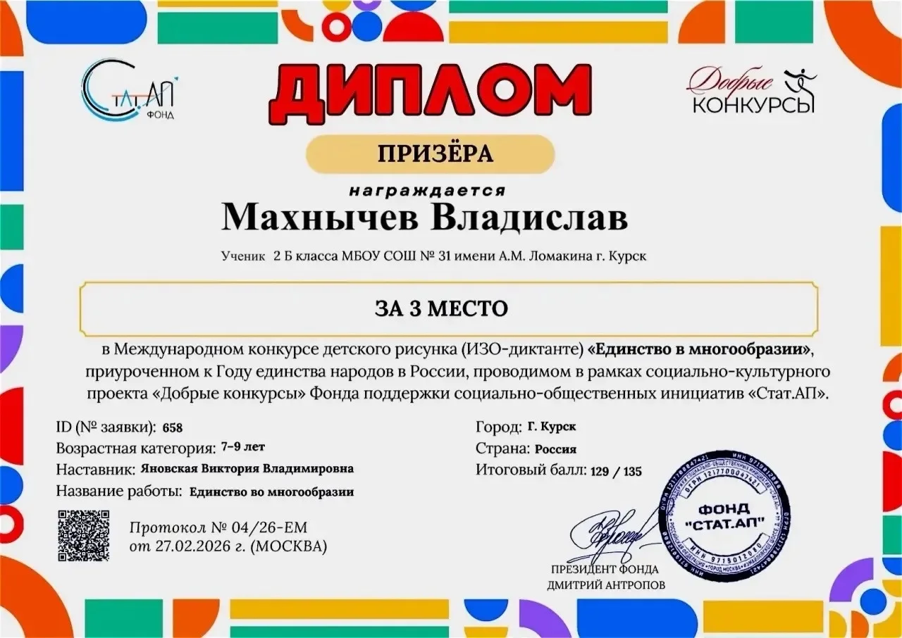 🏆Ученик 2Б класса Махнычев Владислав стал призером этого крупного творческого конкурса! 👏👏👏