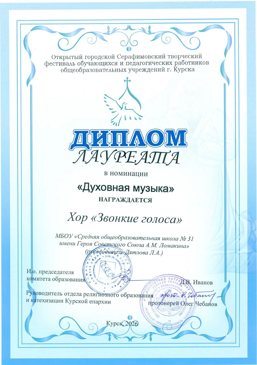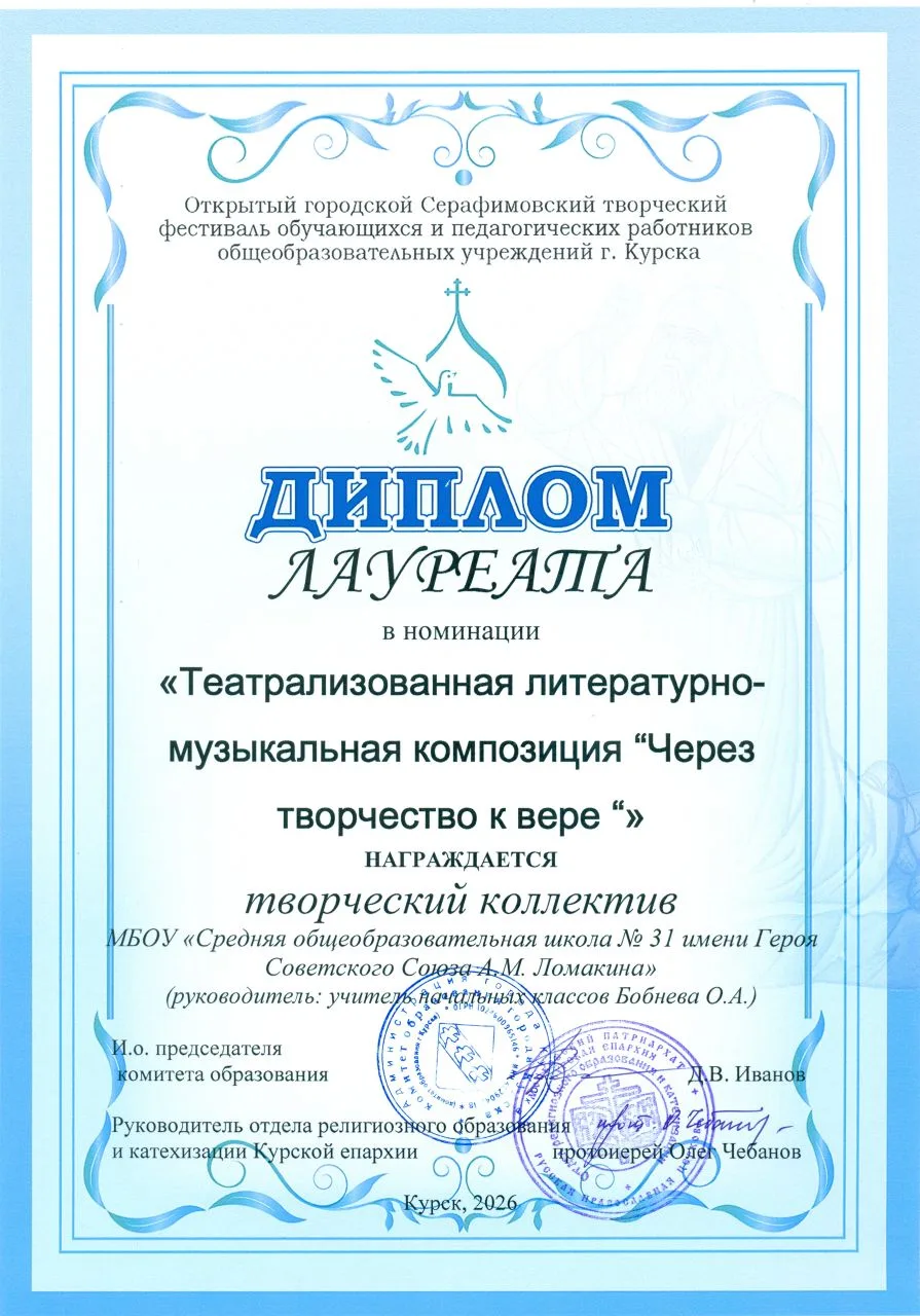 ✨С 27 по 30 января 2026 года на базе Школа № 32 им. прп. Серафима Саровского г.Курска состоялся X открытый городской Серафимовский творческий фестиваль обучающихся и педагогических работников общеобразовательных учреждений города Курска. Он проводится ежегодно с 2017 года и является настоящим праздником духовности и творчества, объединяющим талантливых обучающихся и педагогов. ⛈️