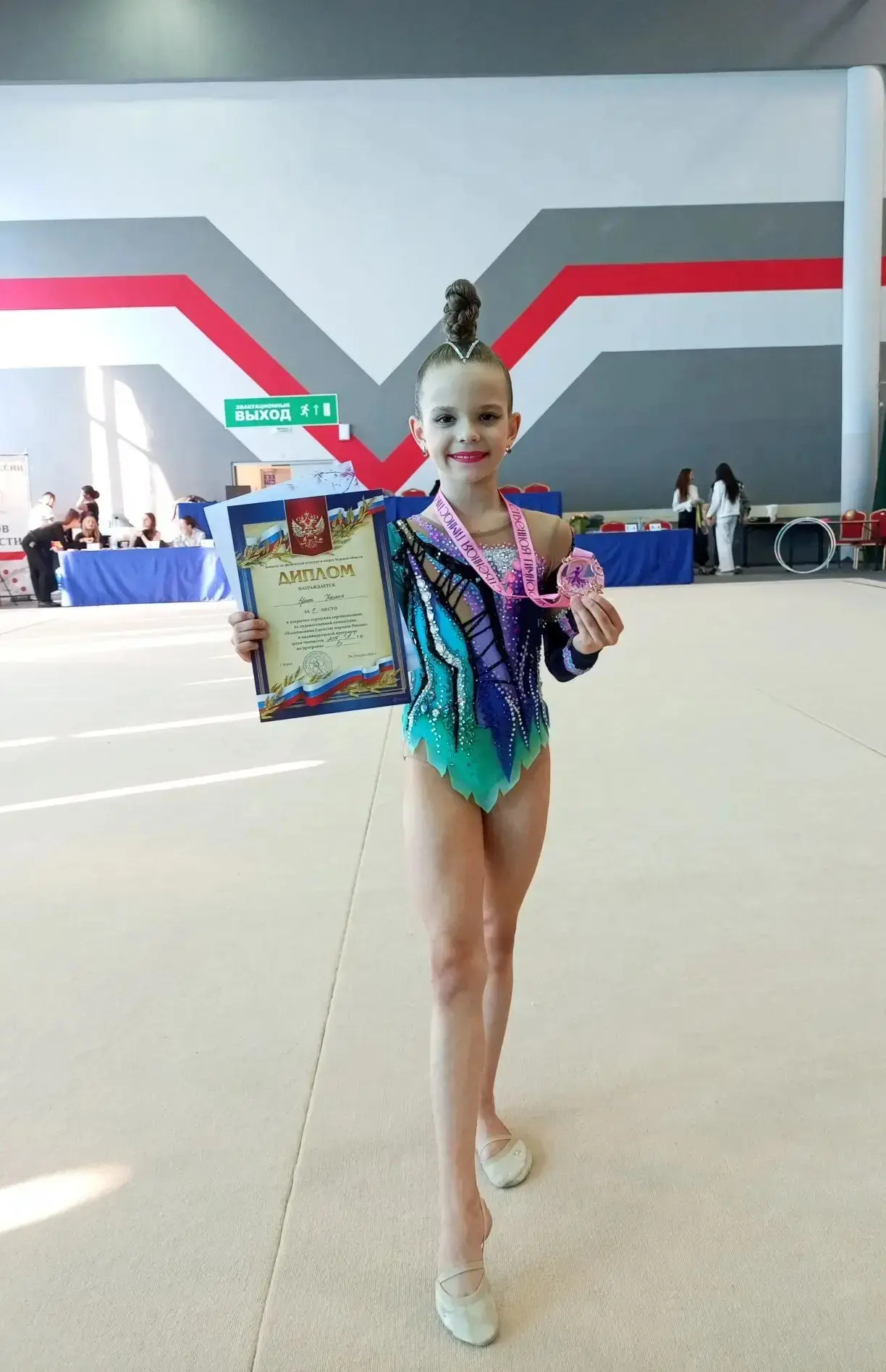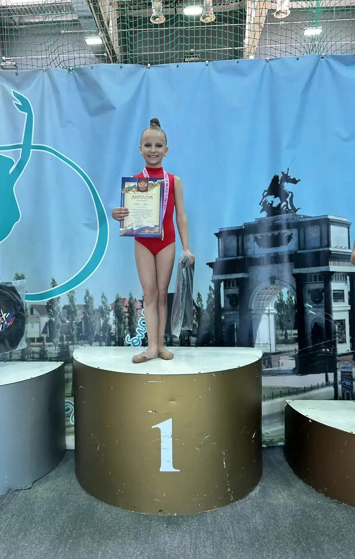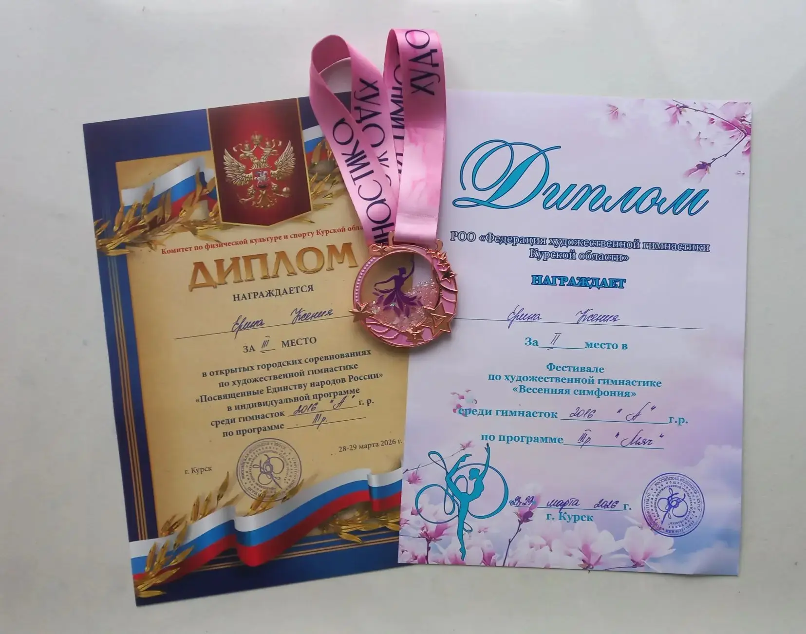Открытые городские соревнования по художественной гимнастике «Посвященные Единству народов России» г.Курск 29 марта 2026 Котова София 2 А класс заняла1 место 🥇