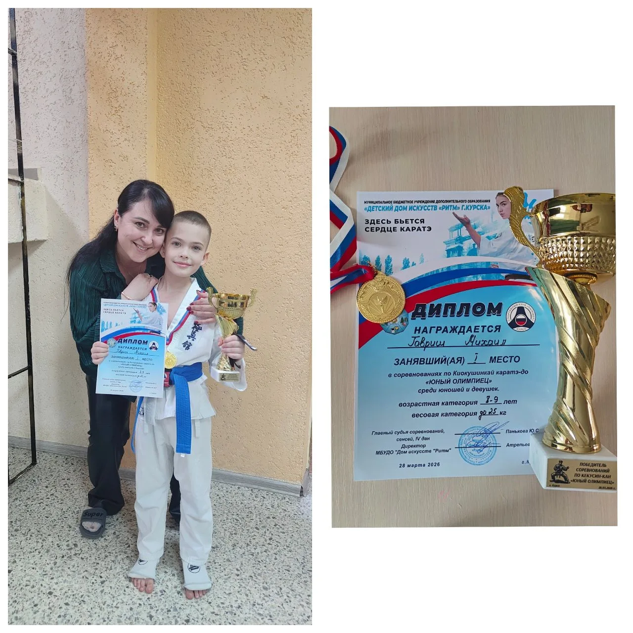 28 марта ученик 2 А класса Гавриш Михаил принял участие в соревнованиях по киокушинкай каратэ -до "Юный олимпиец" и занял 🥇первое место в своей возрастной и весовой категории. Поздравляем!👏👏👏