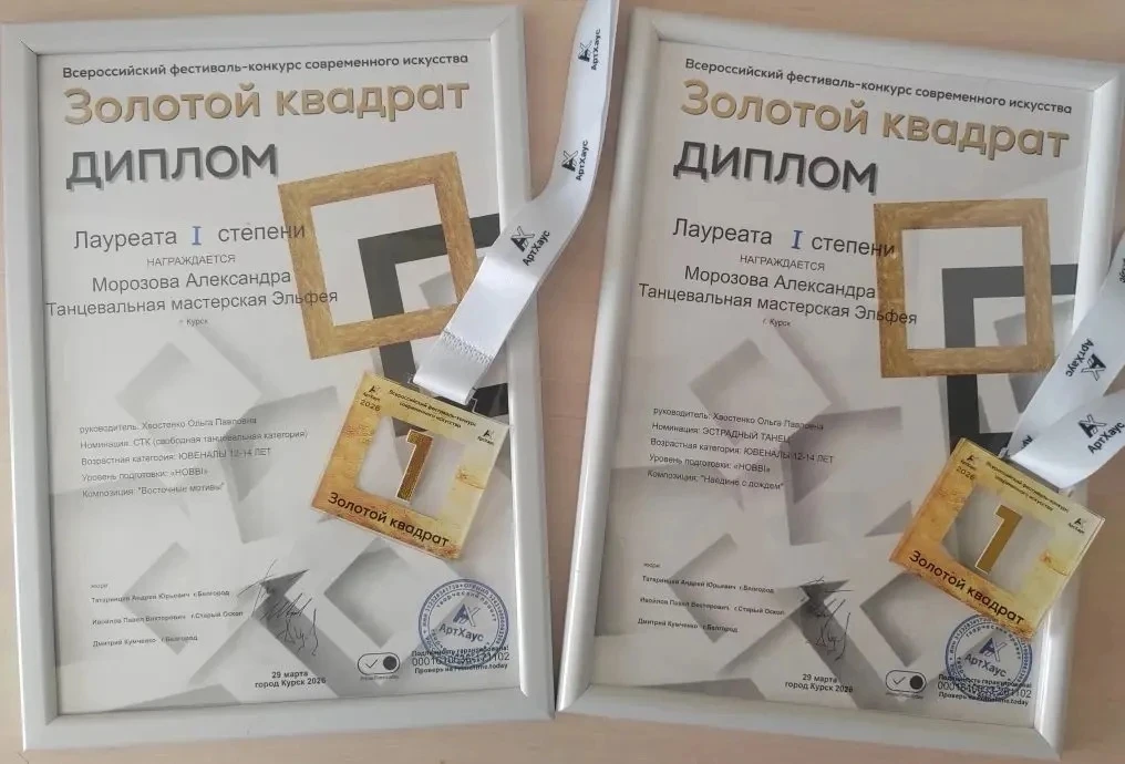 Александра и ученица 9 Б класса Морозова Анна стали Лауреатами 1 степени 🥇🥇во Всероссийском фестивале-конкурсе современного искусства "Золотой квадрат"г. Курск👏