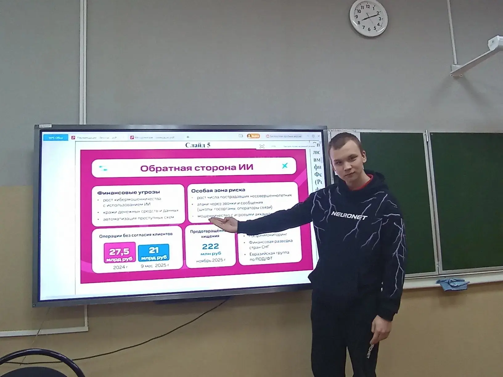 📌С целью мотивации обучающихся на выработку личной стратегии грамотного поведения в ситуациях растущих финансовых рисков и финансового мошенничества в 11 А классе Щербакова Н. В. провела тематический урок "Тёмная сторона искусственного интеллекта".