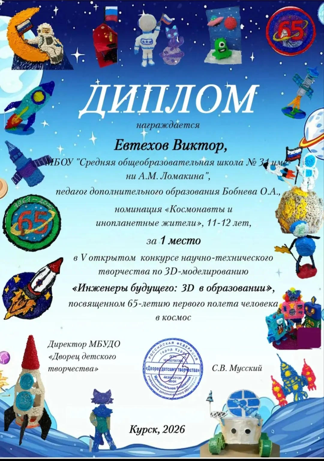 🚀Подведены итоги дистанционного этапа V открытого конкурса научно-технического творчества по 3D-моделированию «Инженеры будущего: 3D в образовании», посвященного 65-летию первого полета человека в космос.