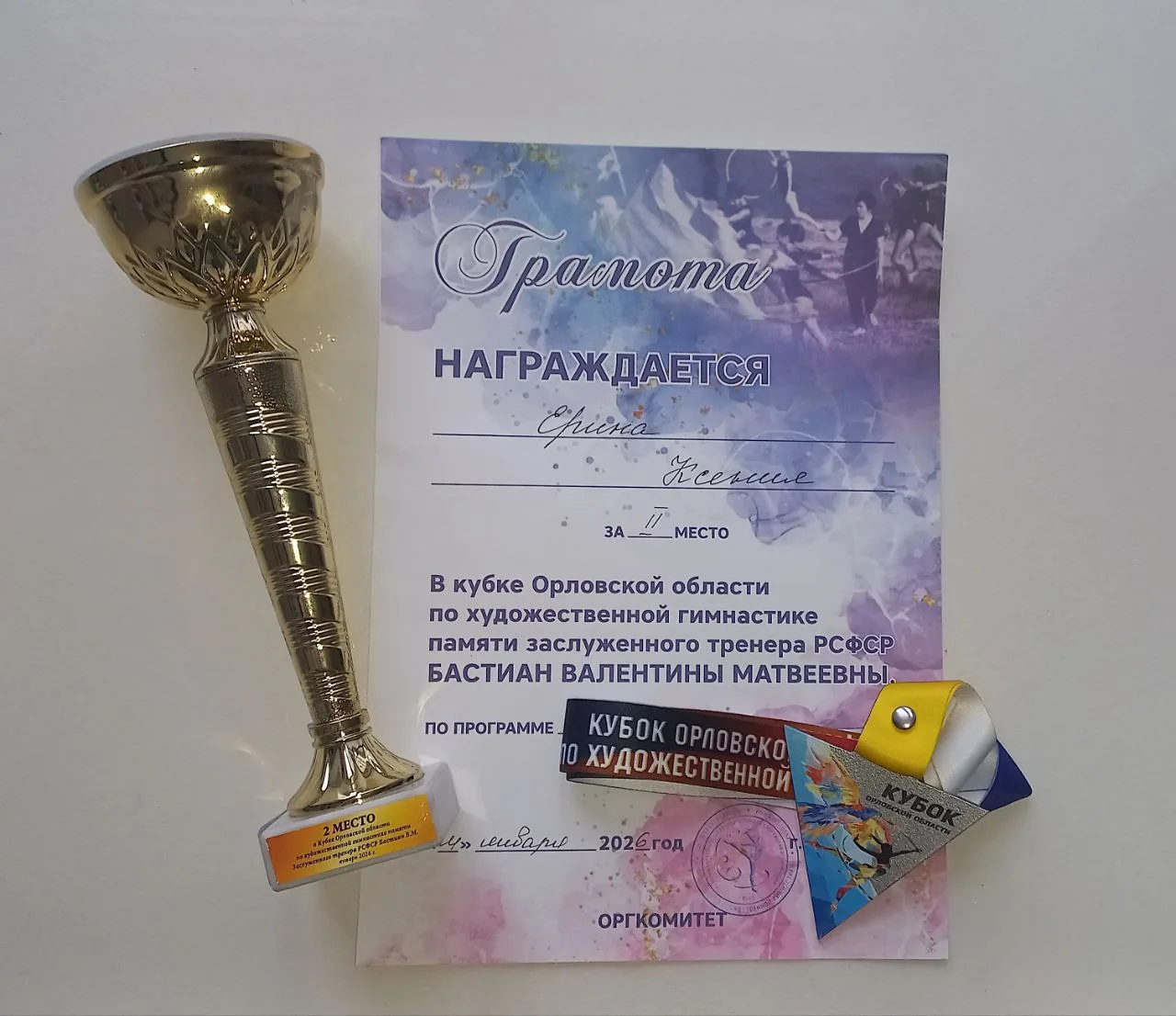 🏆Ученица 3А класса Ерина Ксения приняла участие в кубке Орловской области по художественной гимнастике, посвященном 100-летию заслуженного тренера РСФСР Бастиан Валентины Матвеевны.👍
