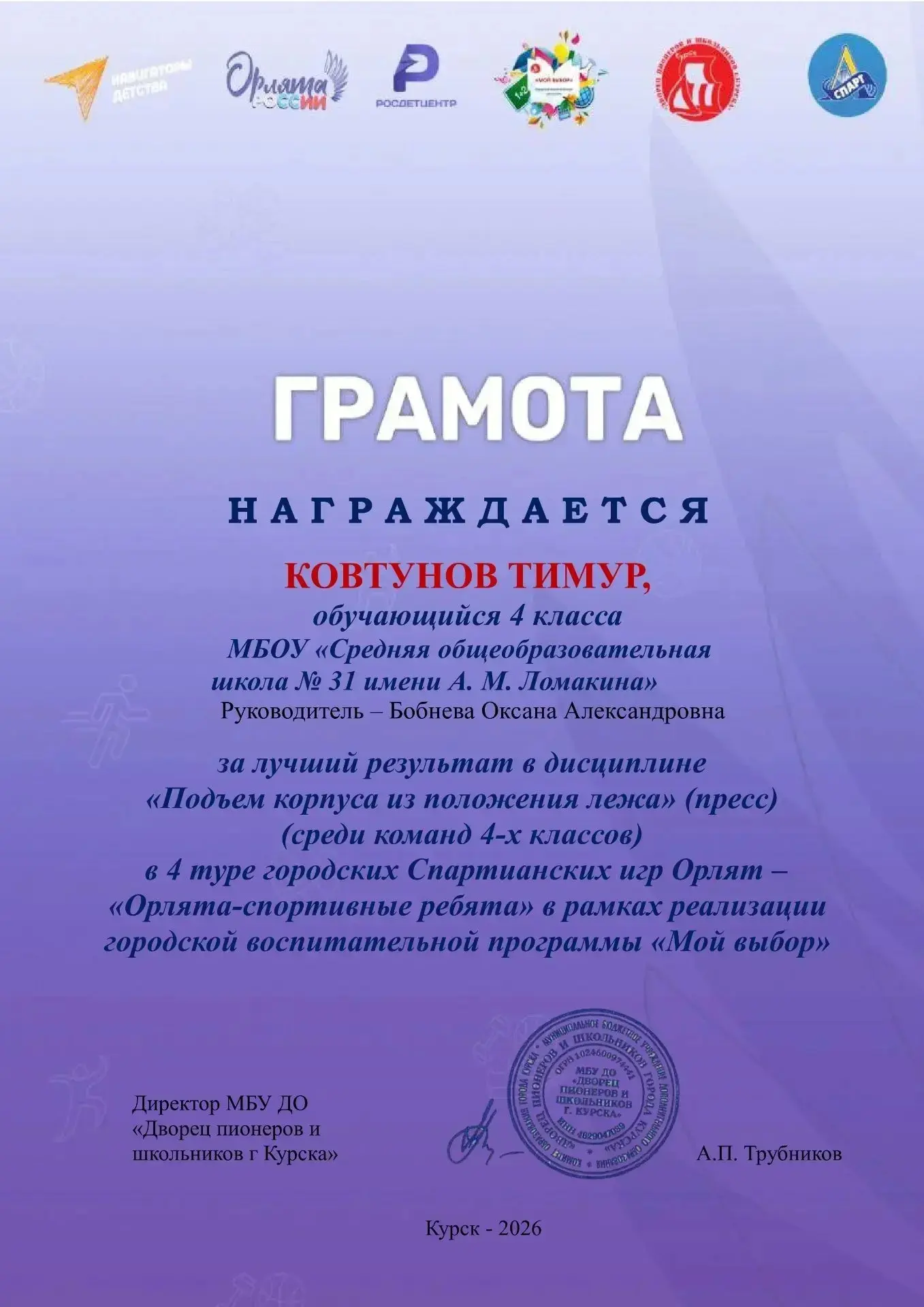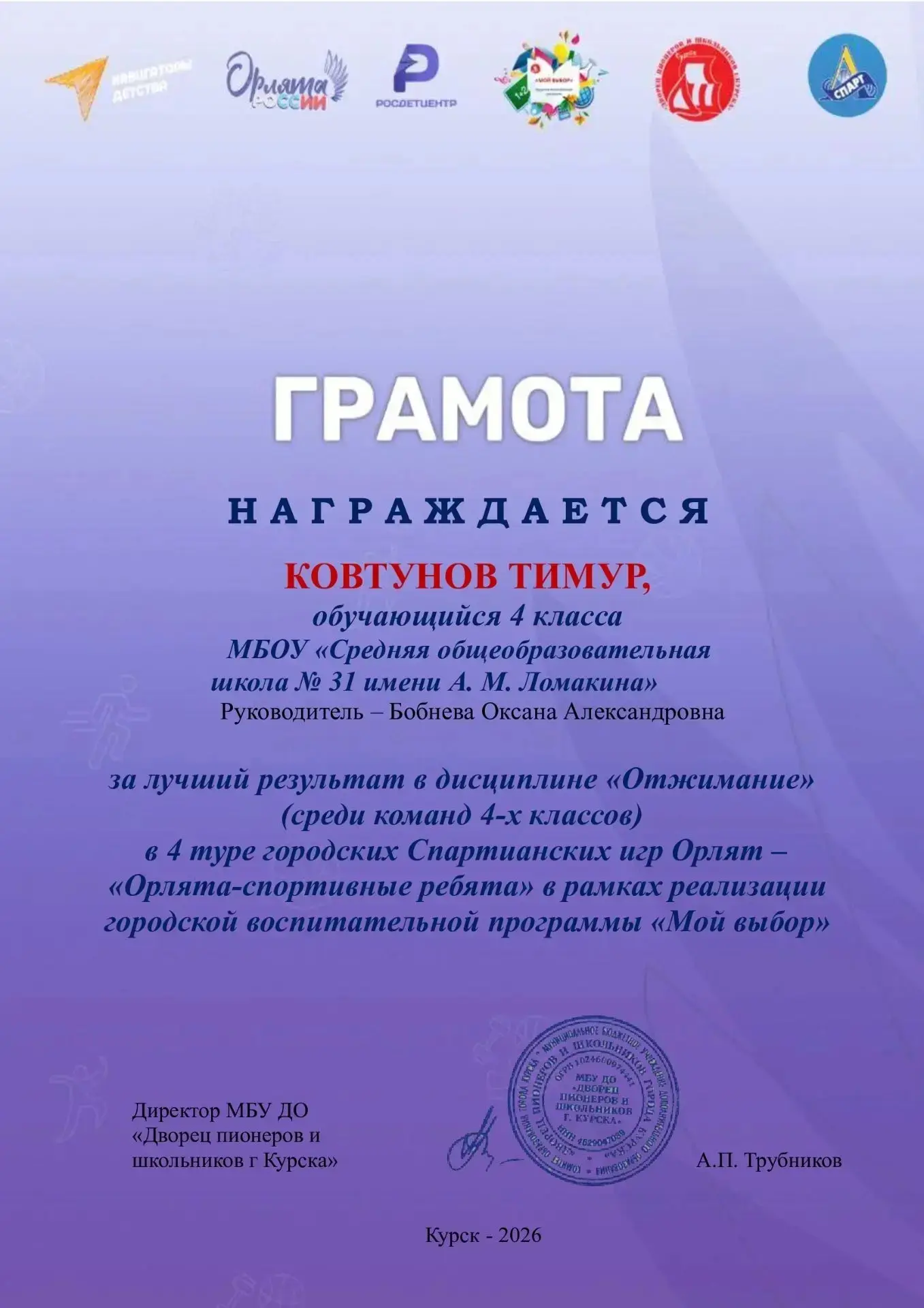 Витя показал достойный результат! Молодец! Поздравляем! 👏👏👏