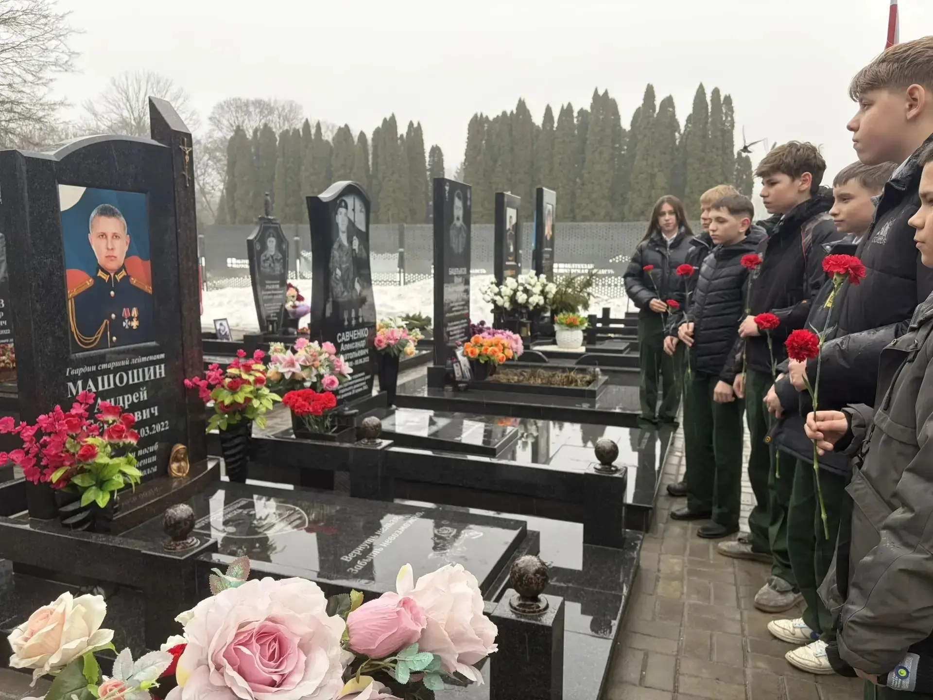 Обучающиеся 7Г класса возложили цветы к захоронению А.Машошина.