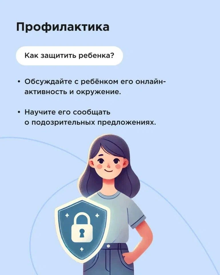 Интернет — это не только пространство для учебы и общения, но и место, где ребенка могут подстерегать серьезные опасности. Злоумышленники — опытные манипуляторы, которые знают, на какие «кнопки» нажать, чтобы войти в доверие к подростку. Подробности о методах защиты и рисках читайте в карточках.