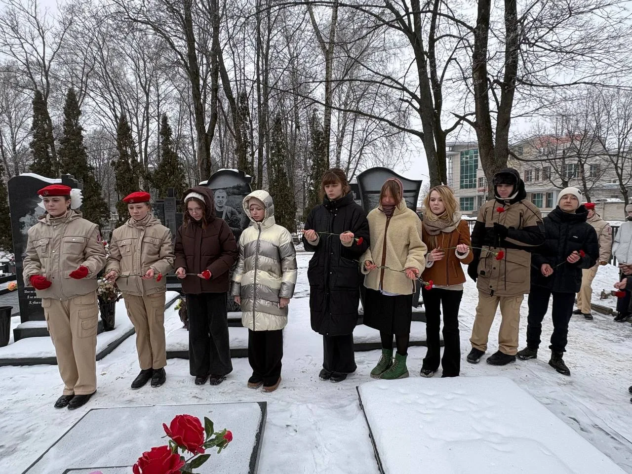 На уроке звучали трогательные истории о том, как они защищали мир и спокойствие на нашей земле. Мы почтили память минутой молчания 🕊, а затем возложили цветы к мемориальным доскам и местам захоронения героев. 🌹🙏