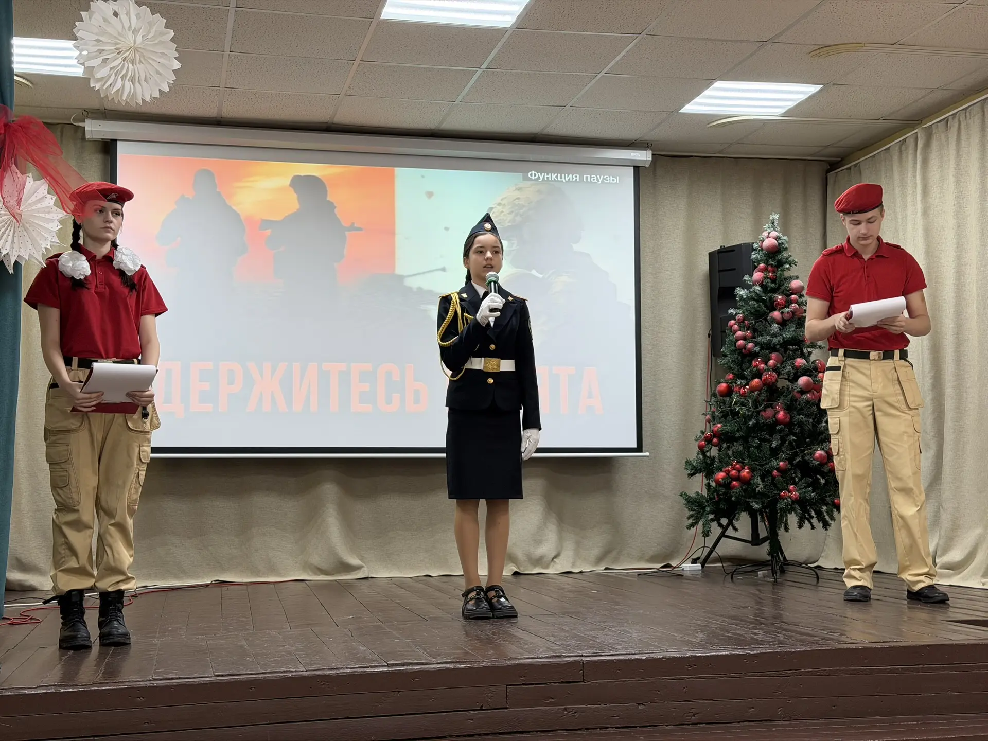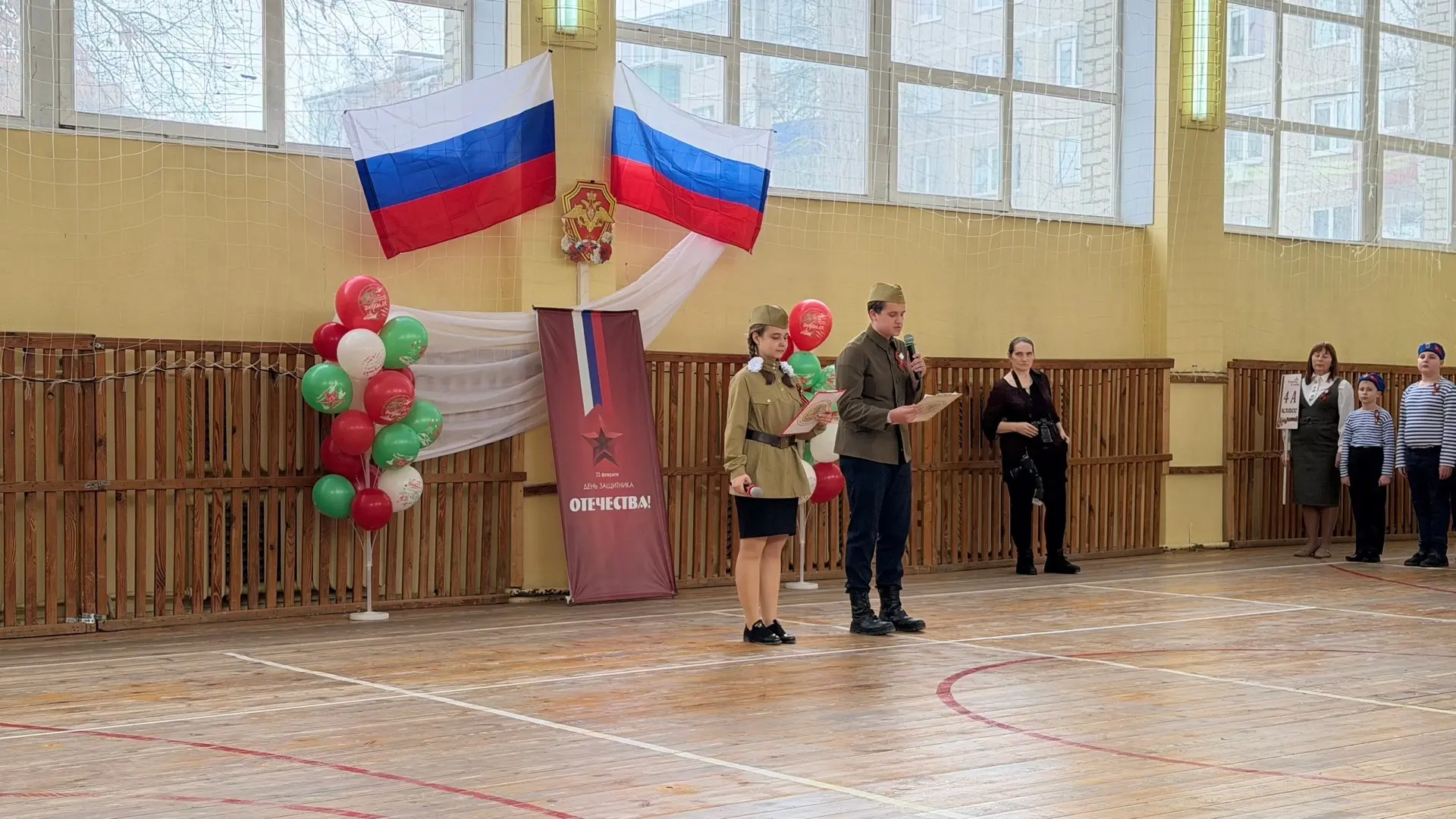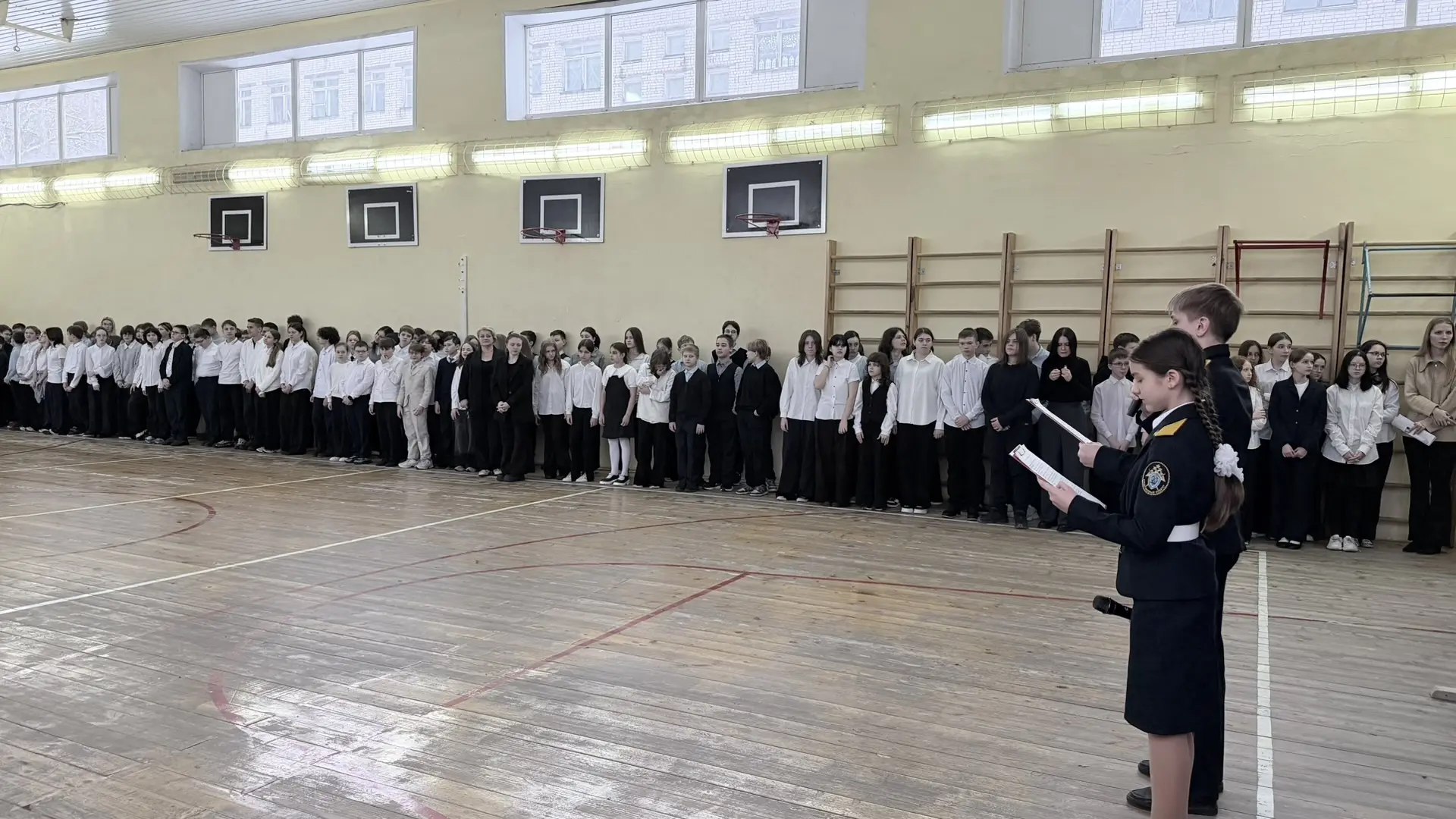 Линейки провели кадеты 7А класса Сысоев Григорий и 5Б класса Рождественская Анастасия.