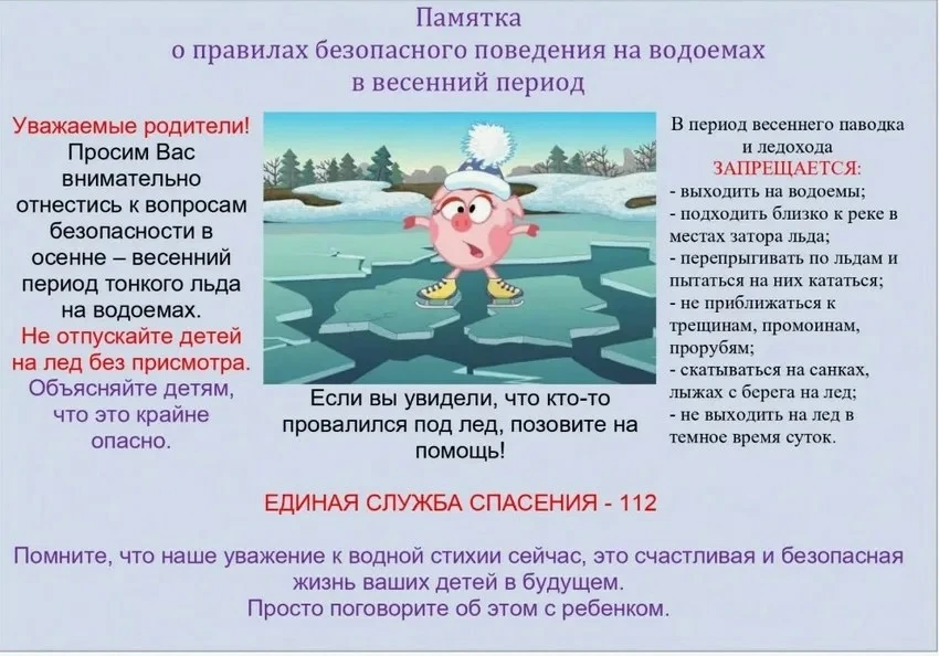 Памятки о правилах безопасного поведения на водных объектах в весенний период
