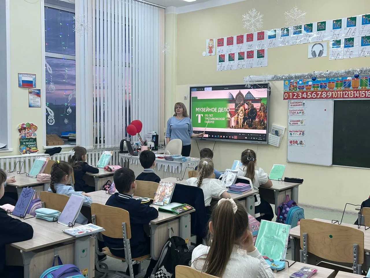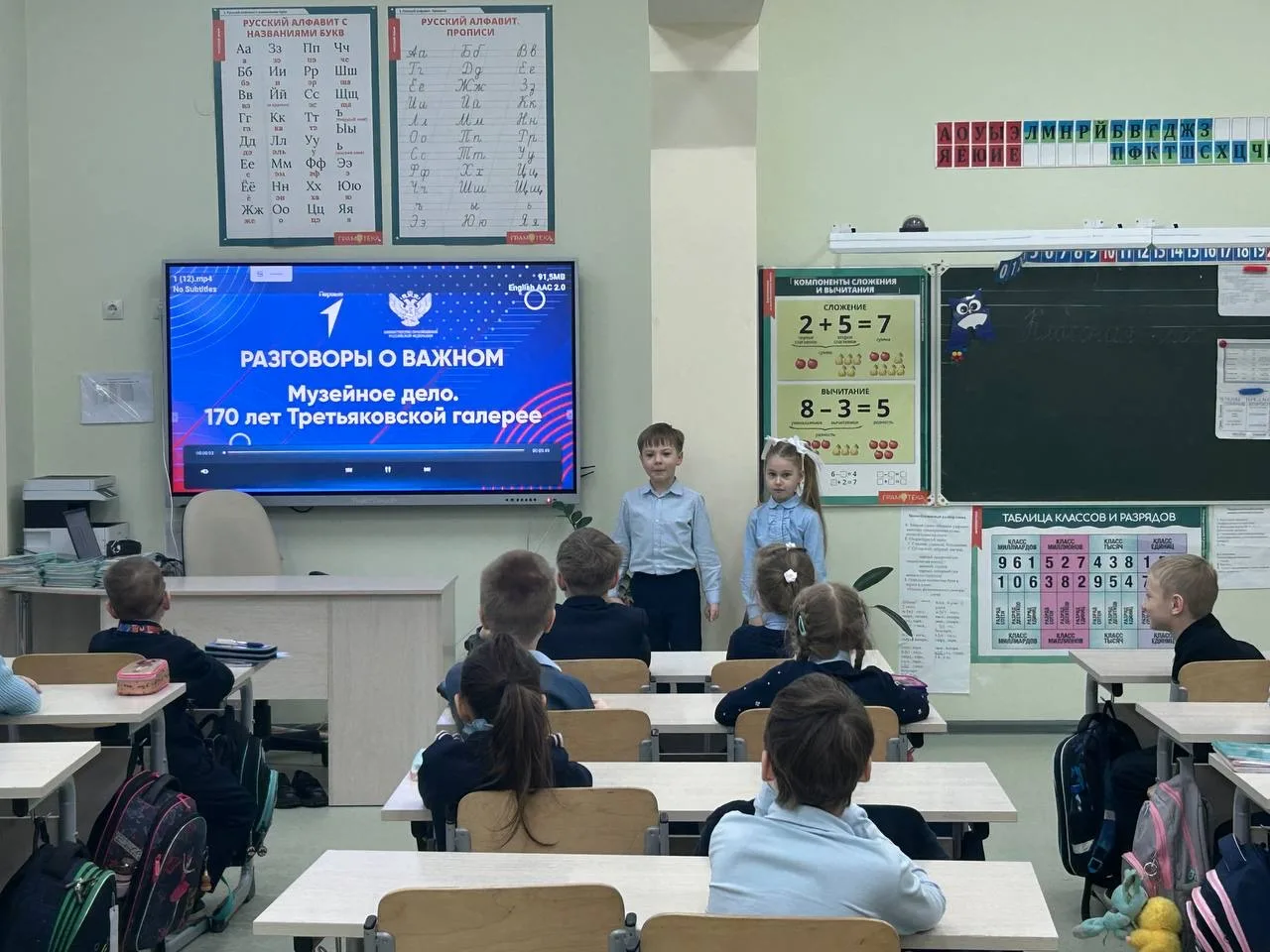 📚 В процессе учащиеся не только обсуждали тему, но и смотрели познавательные видео, выполняли интерактивные задания. Ребята узнали, что Россия обладает сокровищницей мировой культуры, и одно из её главных богатств — Третьяковская галерея.