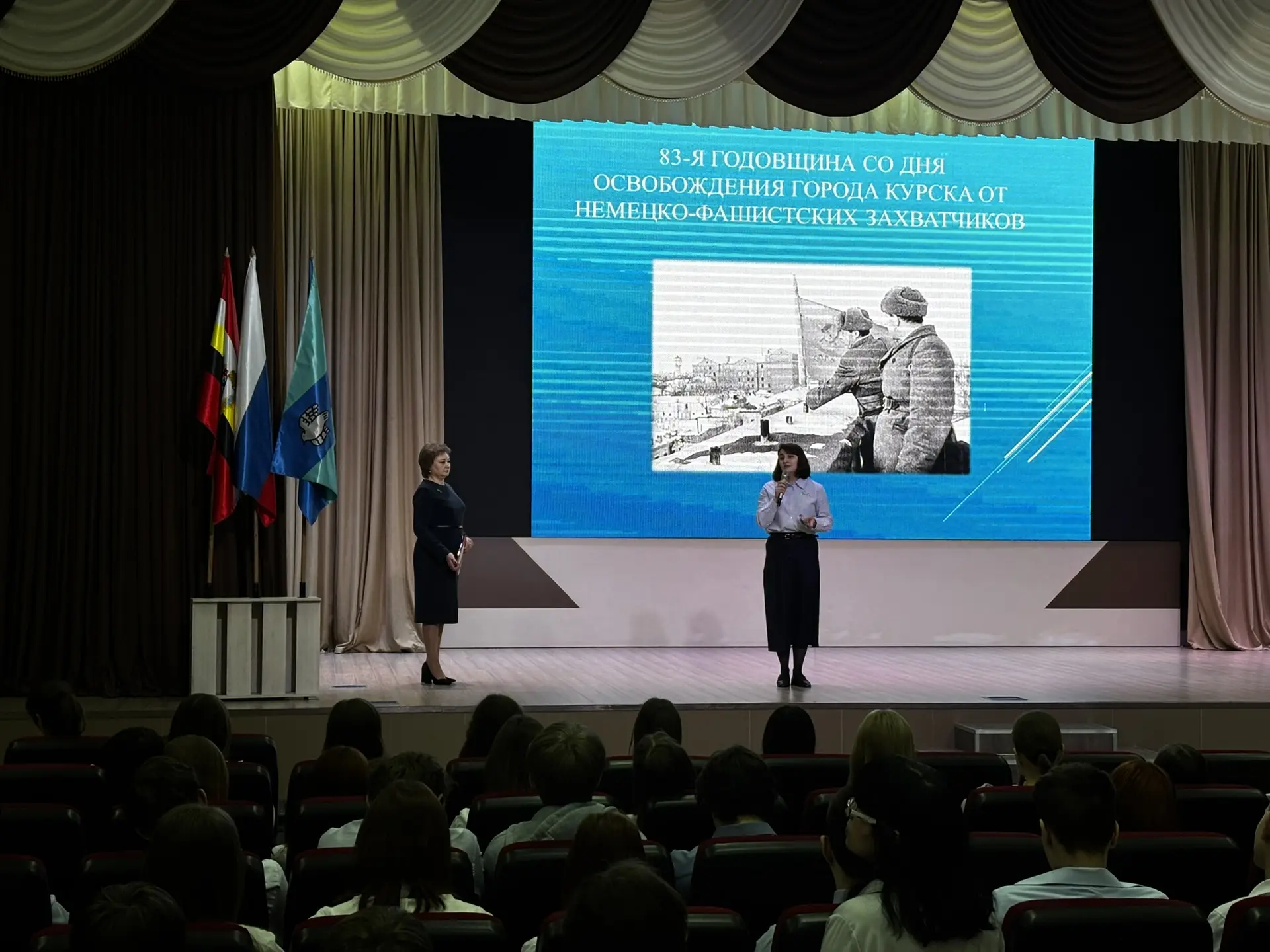 В рамках Урока ребята увидели уникальные хроники освобождения г.Курска и фильмы о Героях, освобождавших город.