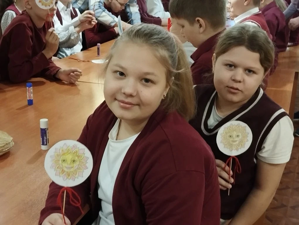 Сегодня ученики 4В класса побывали на Масленице 🌞. Ребята познакомились с традициями масленичной недели 🥞, сделали солнышко своими руками и попробовали угощение, которое сделали вместе со своими родителями дома.)