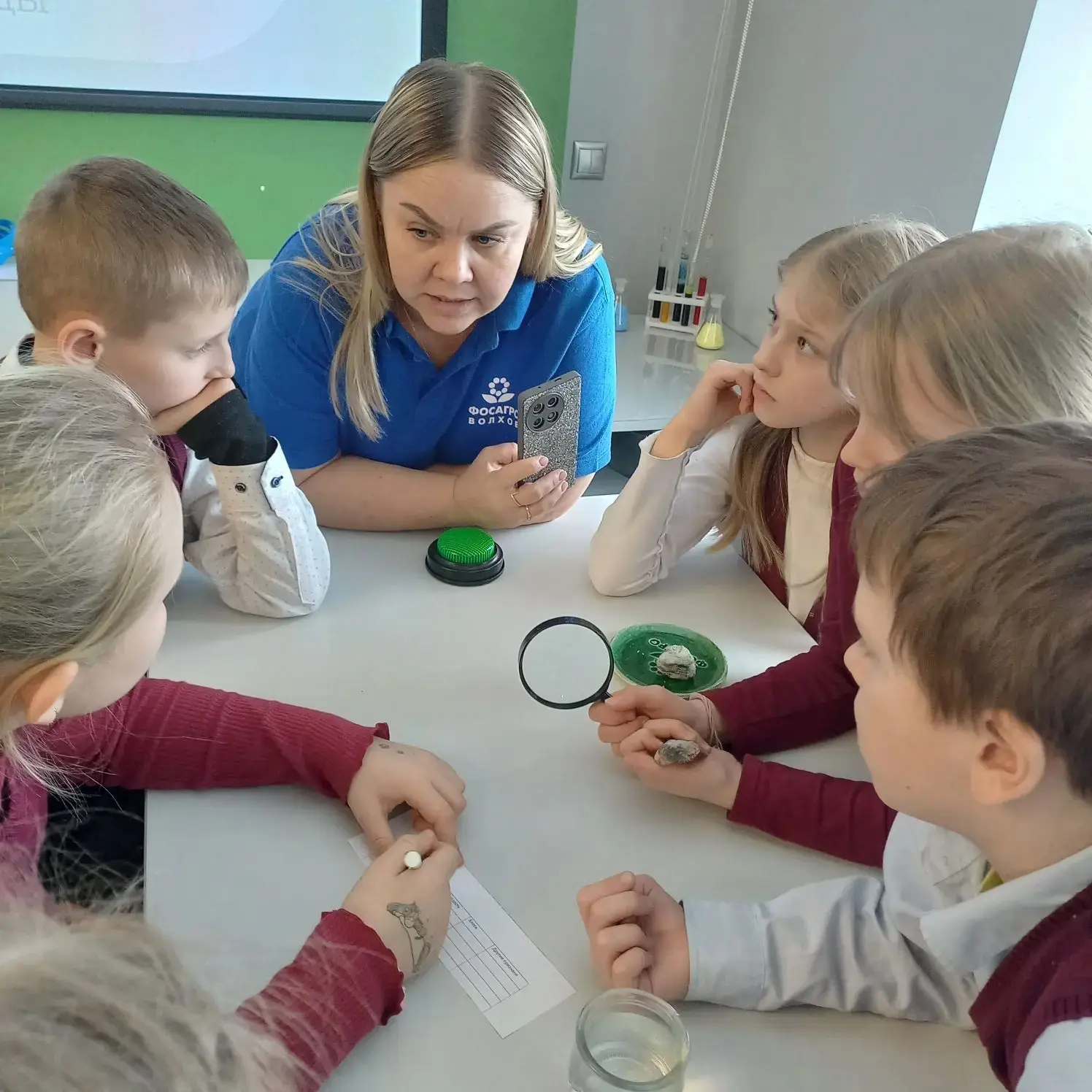 Ребята исследовали разные минералы, выясняли их свойства с помощью лупы и микроскопа. Работали в командах. Лучшие знания оказались у команды "Апатит".
