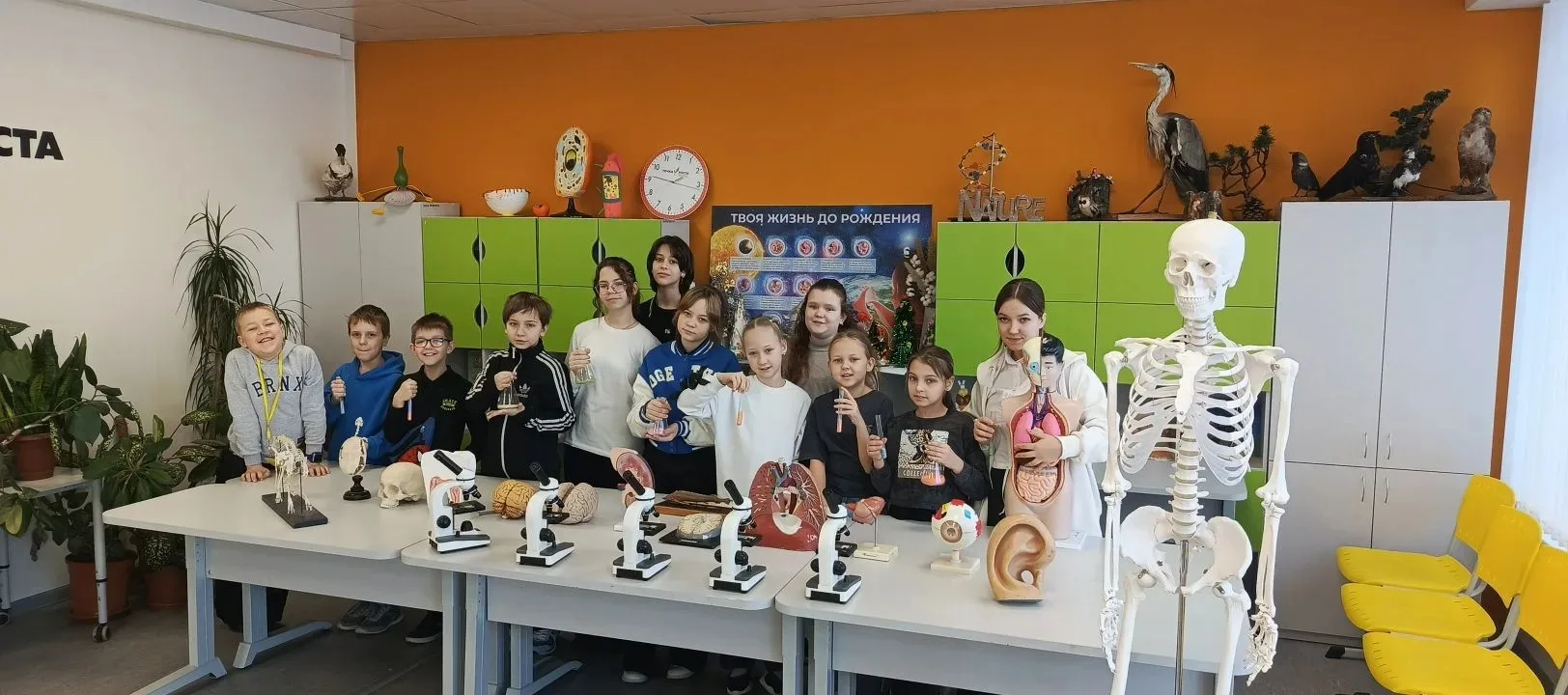 Ребята из 5-х классов познакомились с внутренним миром человека. Обучающиеся собирали на скорость скелет и распределяли внутренние органы человека на макете. Все ребята активно болели и поддерживали участников, так как это требовало не только скорости, но и понимания строения человеческого тела. Каждый из участников смог собрать свой собственный скелетик на память.