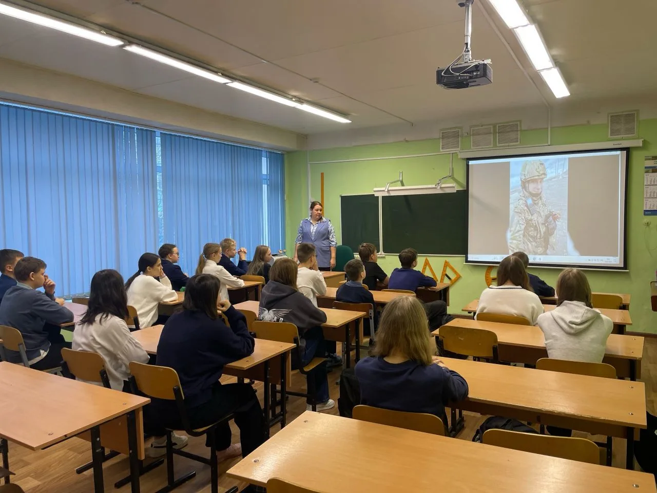 Занятие, приуроченное к Дню защитника Отечества, называлось «Герой из соседнего двора». И это название оказалось пророческим. В видеоролике, который смотрели все школьники Ленинградской области, рассказали об участнике специальной военной операции. А затем прозвучало самое главное: этот человек — наш выпускник- Катилин Игорь Николаевич.
