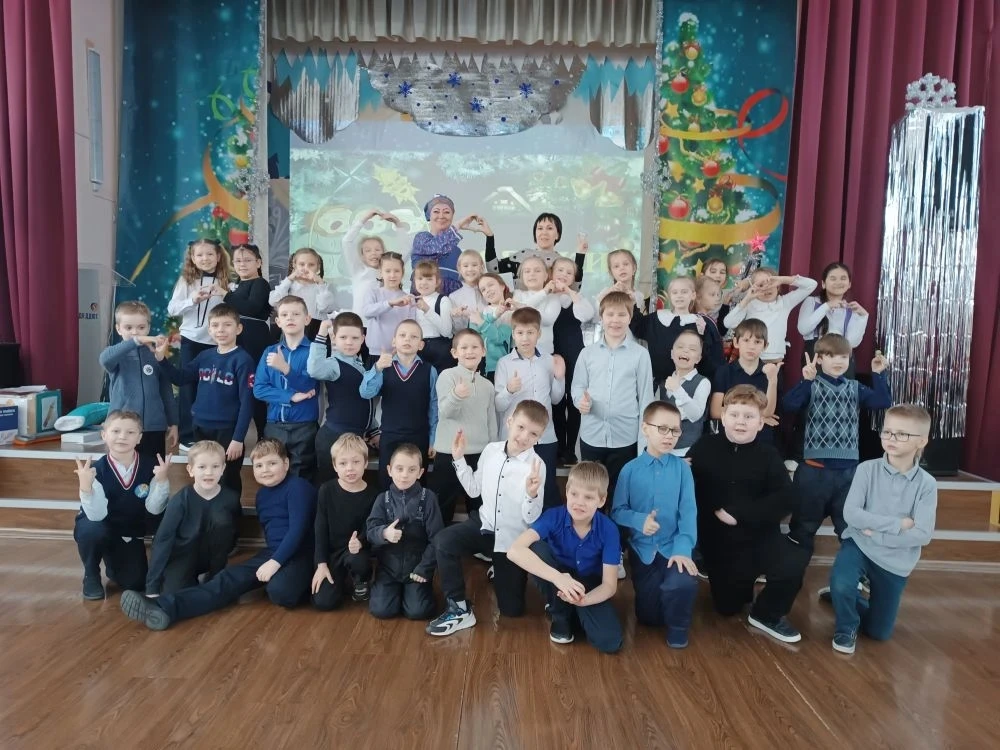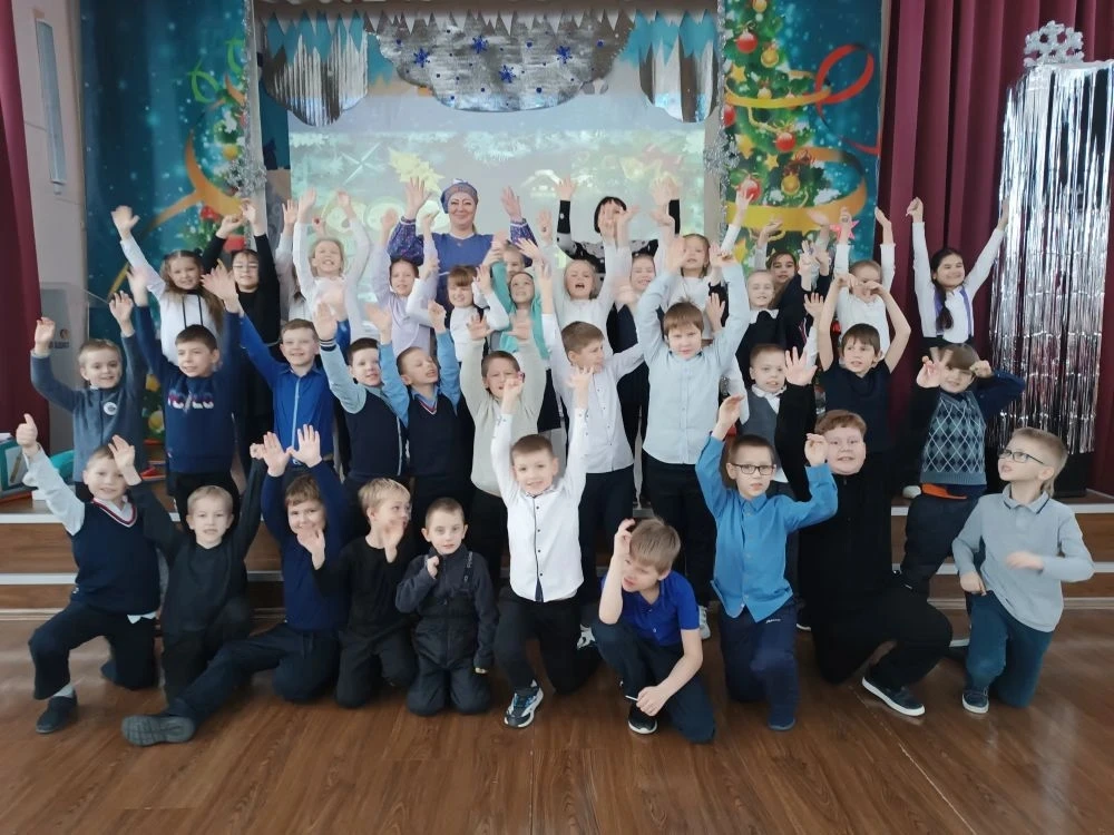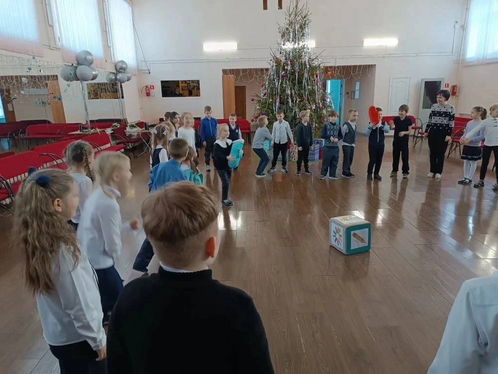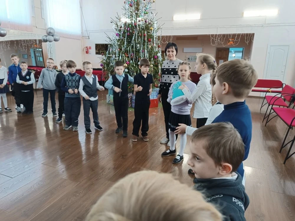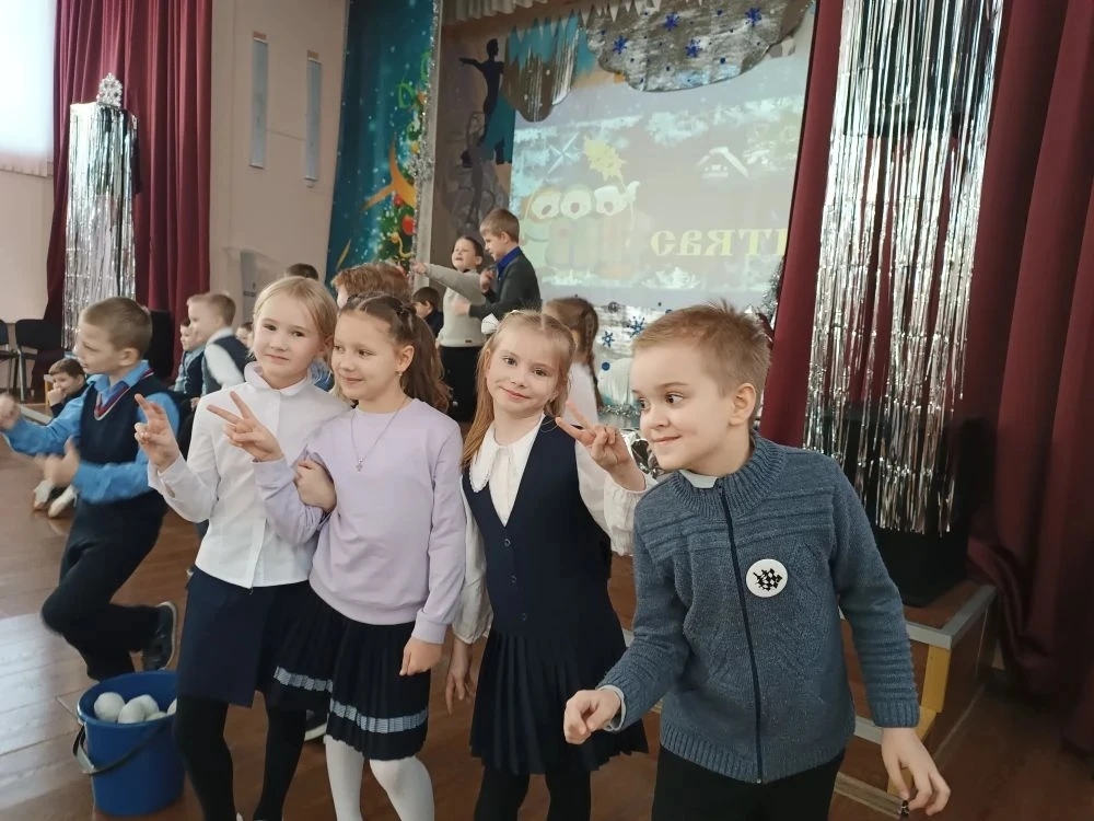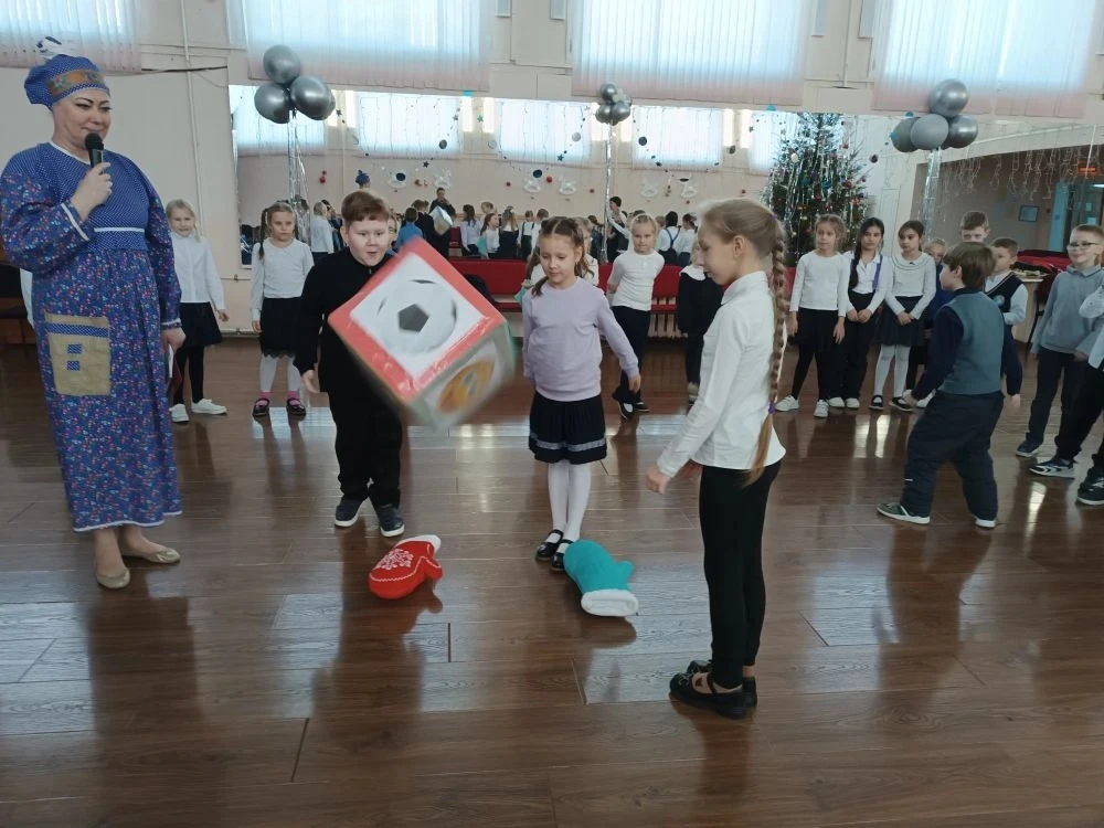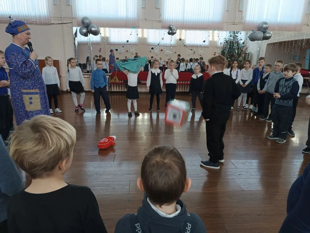 В актовом зале было шумно и очень весело. Для ребят радушная хозяюшка подготовила танцы, песни, шутки, загадки, увлекательные игры. Не обошлось и без гаданий: ребята узнали, что их ожидает в новом году (появление новых друзей, хорошее настроение, отличная учёба, крепкое здоровье и т. п.)❄️
