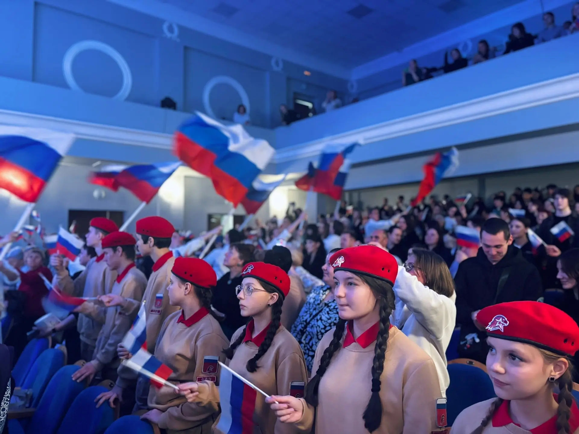 Ученицы нашей школы Екатерина Скиданова из 7 "В" класса и Алисия Дмитриева из 3 "Г" класса приняли участие в торжественном мероприятии, посвящённом годовщине воссоединения Крыма с Россией.