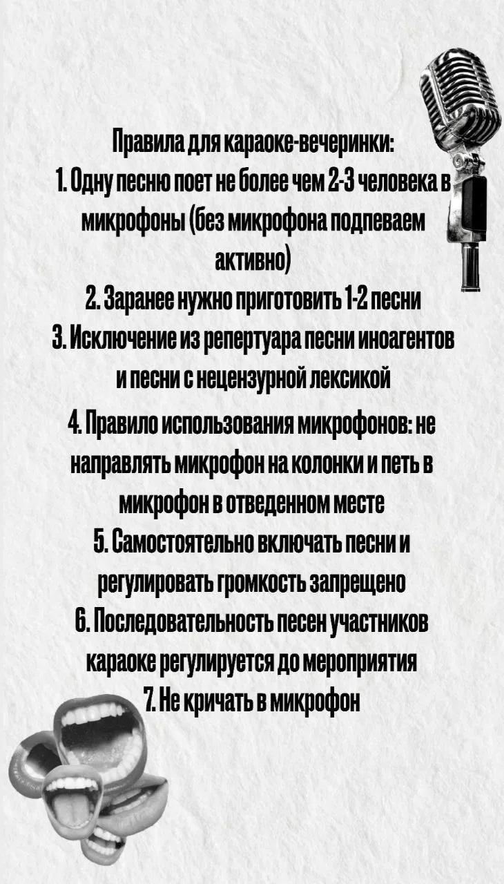 * Обязательно ознакомьтесь с правилами посещения караоке-вечеринки на втором слайде