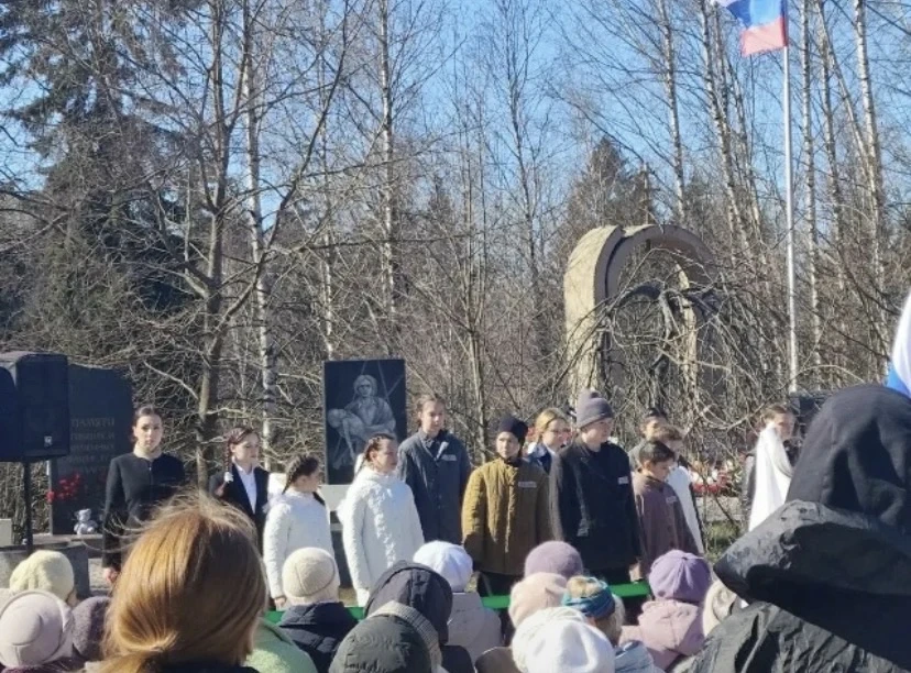 Ученики 8 Д класса в сопровождении классного руководителя Тимофеевой Ксении Вячеславовны приняли участие в патриотической Акции,которая прошла на Румболовской горе и посвящена Международному дню освобождения узников фашистских концлагерей.