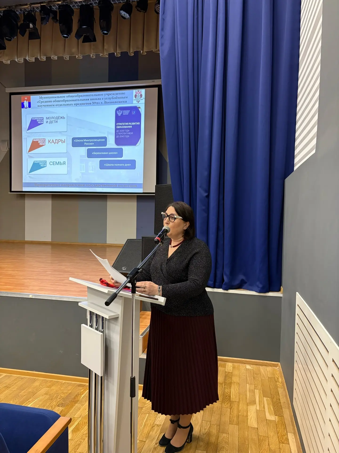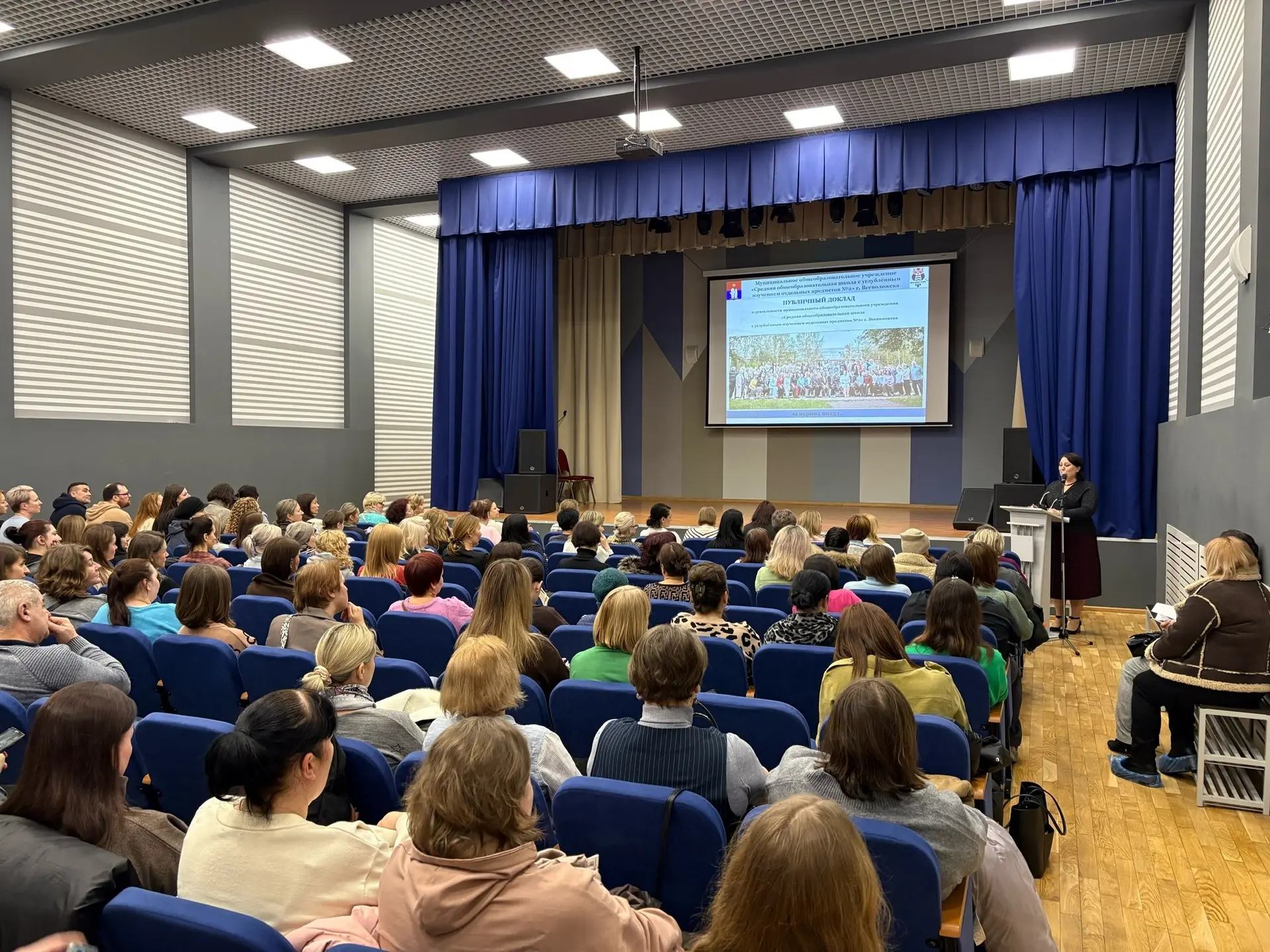 Расторгина Оксана Михайловна выступила с Публичным докладом о деятельности учреждения за 2025 год. Вниманию родителей были представлены результаты школы по итоговой аттестации выпускников 9, 11 классов, достигнутые показатели в учебной и воспитательной работе, дополнительном образовании, олимпиадном движении, итоги конкурсов, акций, мероприятий по различным направлениям деятельности школы, результаты работы по патриотическому воспитанию школьников, их профессиональному самоопределению, а также информация об итогах финансово – хозяйственной деятельности школы.