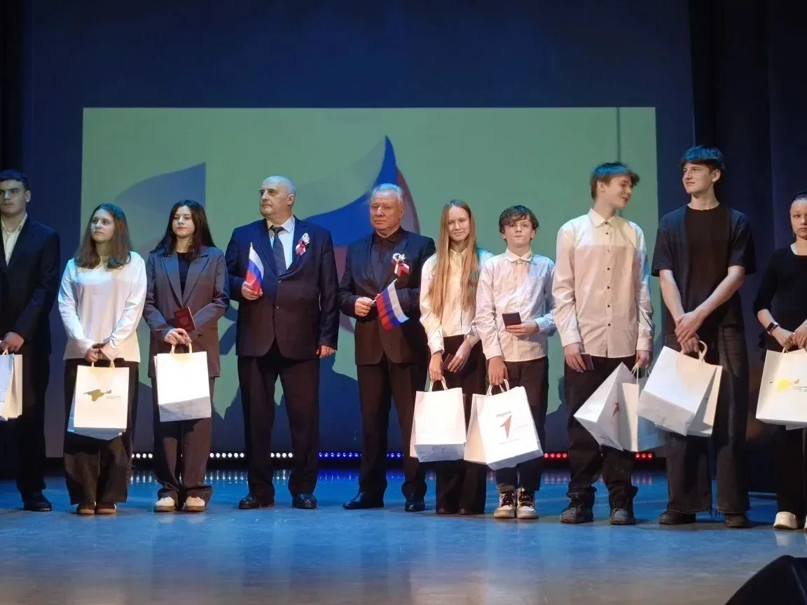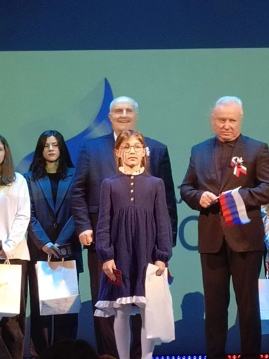 Катя получила паспорт и подарки от Движения Первых, а Алиса - значок ГТО и суверниры из рук главы Администрации Всеволожского района Андрея Леонидовича Воропаева.