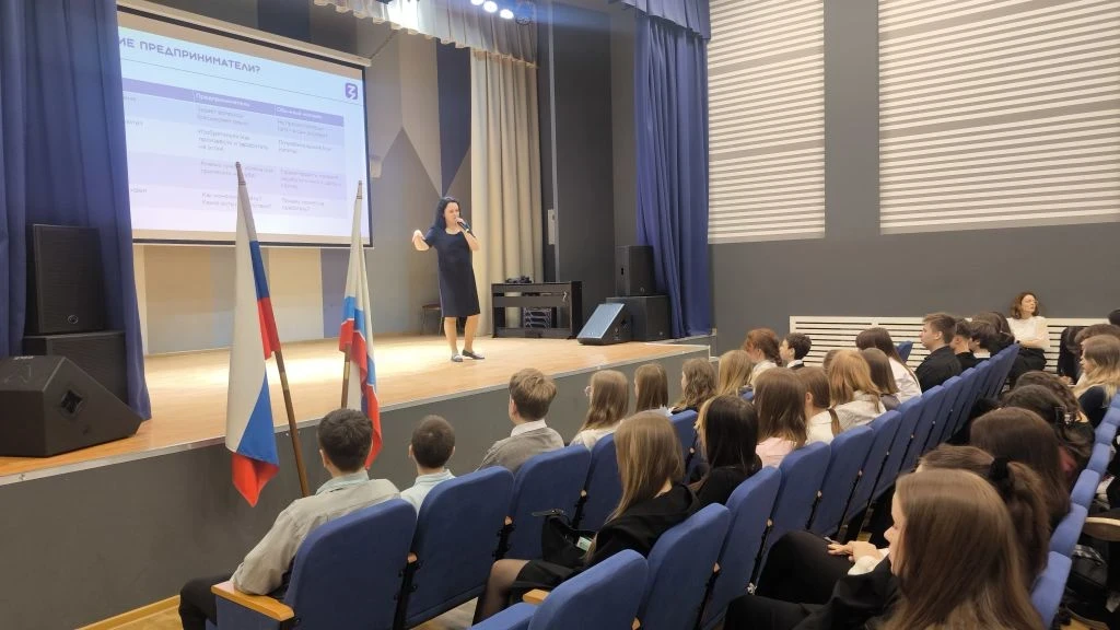 16 марта в рамках урока "Разговоры о важном" перед учениками 7-ых, 9-ых, 10-ых и 11-ых классов с темой "Особенности предпринимательского мышления" выступила лектор Российского общества "Знание", педагог и представитель Регина Львовна Притула.