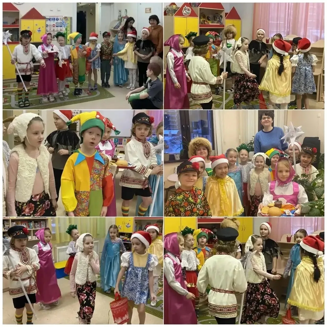 По традиции дети подготовительной группы «Лучики» прошли с колядками по детскому саду - «Гуляли ребятки на веселые Святки». Нарядившись в нарядные костюмы, дети отправились вслед за Вифлеемской звездой, а сопровождали их воспитатели Гриб В.М., Тетерина В.В. и учитель-логопед Ратомская А.И. Вместе с колядовщиками сначала навестили заместителя директора по ДО Наталию Тагировну Сапукову и заместителя директора по ВР Людмилу Леонидовну Доносиян. Затем отправились в группы к младшим воспитанникам. Малыши очень удивились, увидев в своей группе столько нарядных гостей, но с удовольствием смотрели, подпевали, пританцовывали и хлопали в ладоши. Везде, где побывали колядовщики, их угощали сладостями.