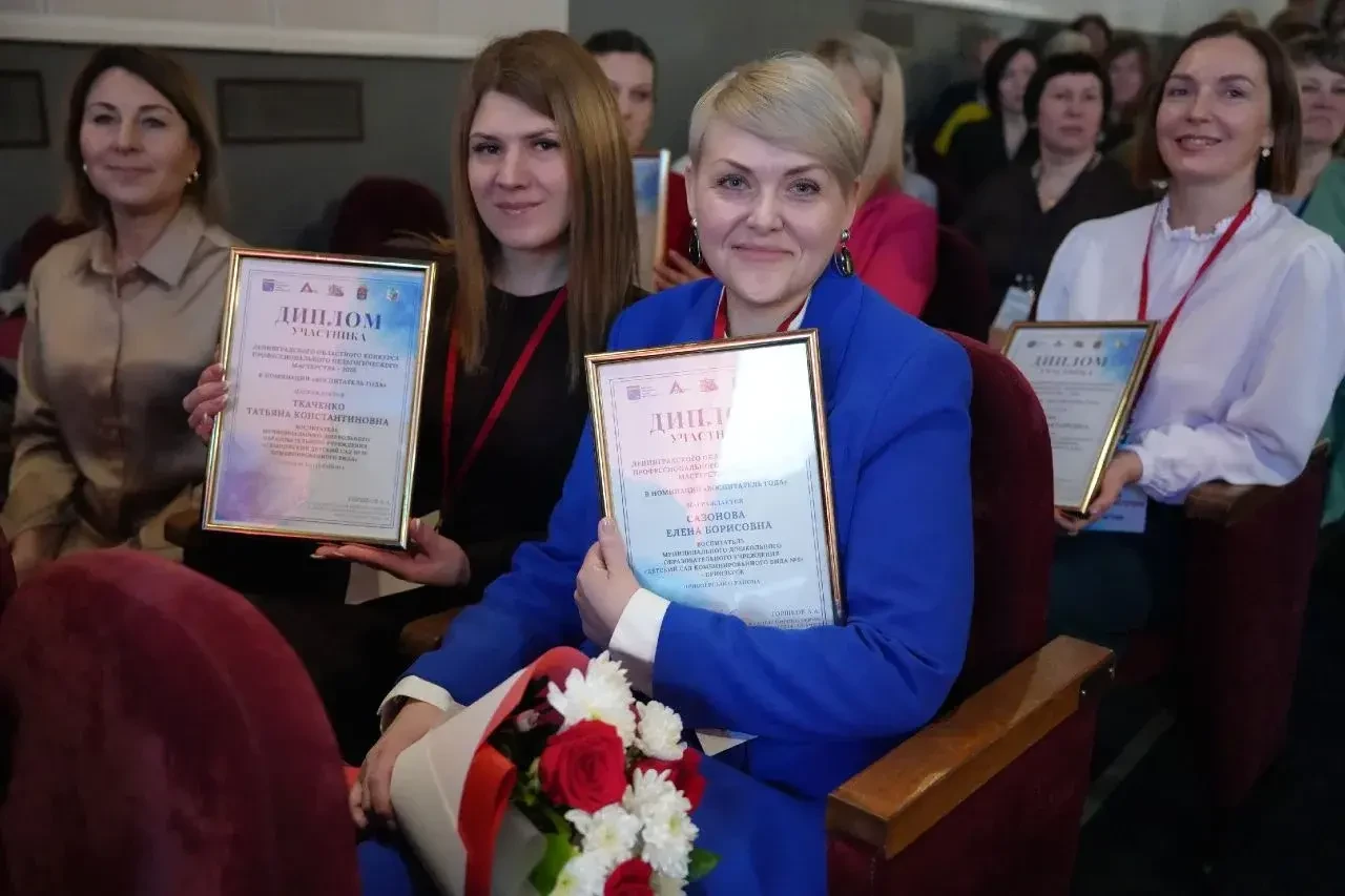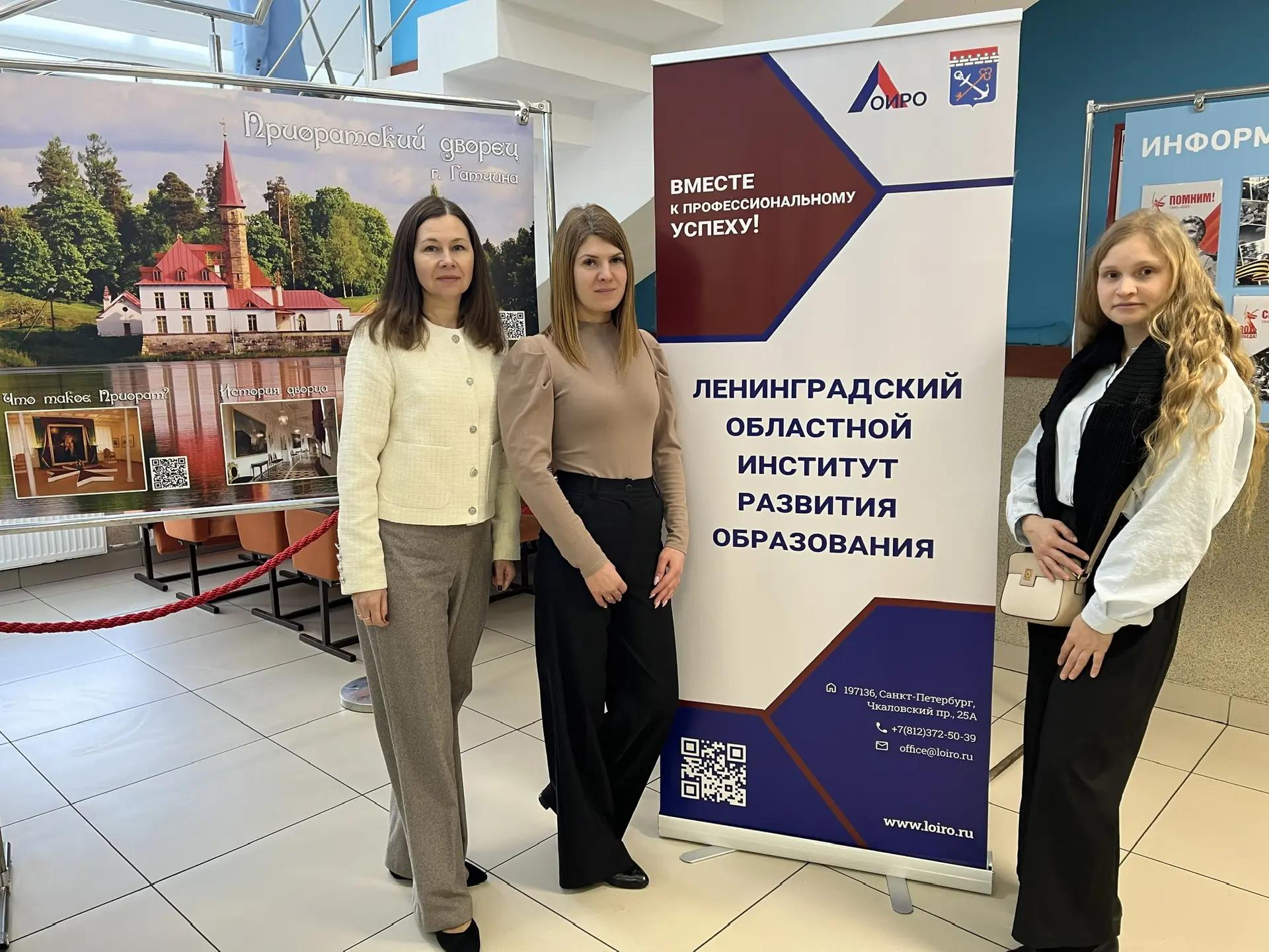 Сланцевский район представляли Пензова Н.Б., учитель английского языка МОУ «Сланцевская СОШ №3», победитель муниципального конкурса «Учитель года - 2025»; Ткаченко Т.К., воспитатель МДОУ «Сланцевский детский сад №10», победитель конкурса в номинации «Воспитатель года» и Остроградская В.А., заведующий структурным подразделением «Методический отдел», МУДО СППЦ.