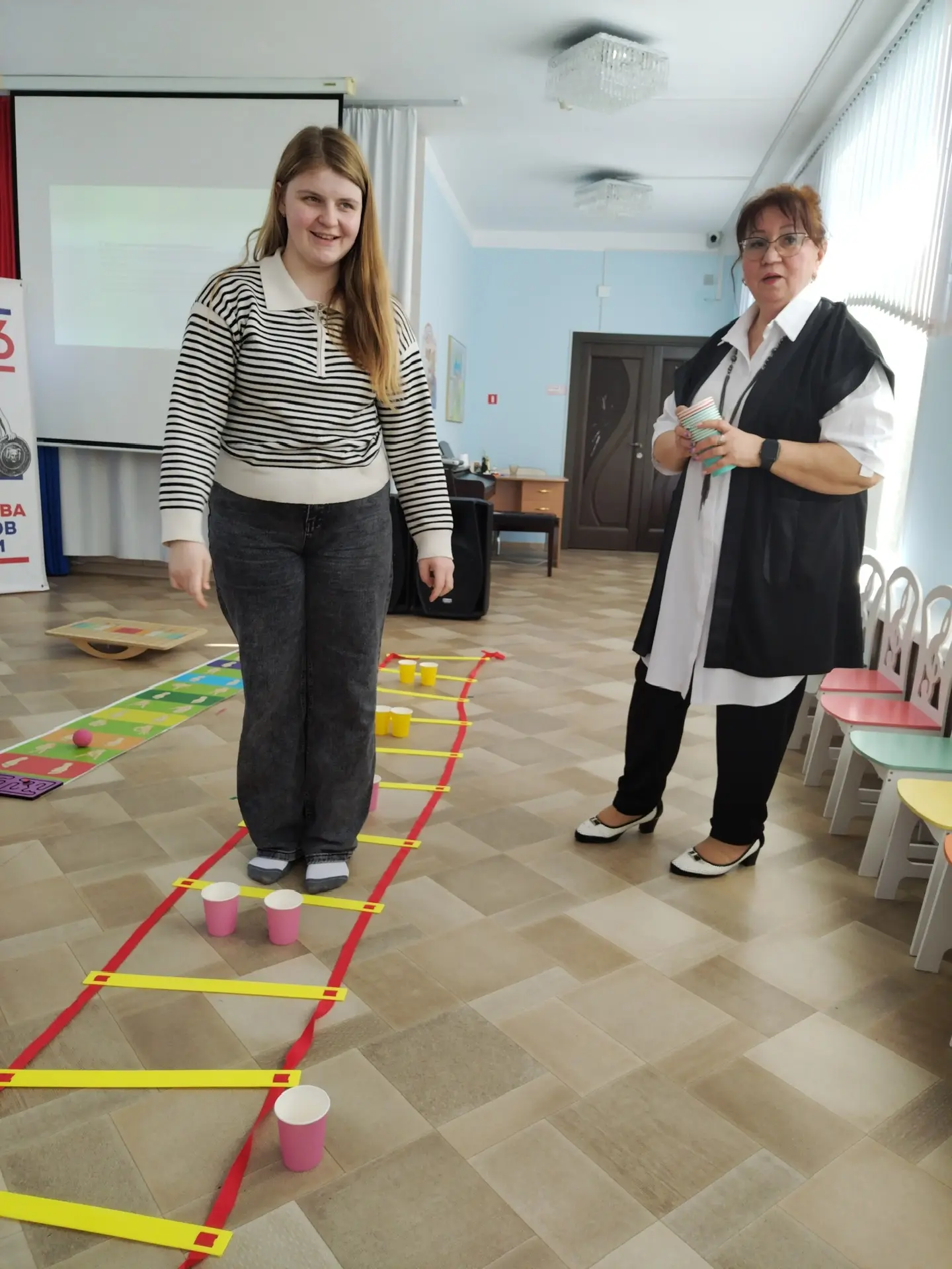 Председатель совета молодых педагогов Сланцевского района ,педагог- психолог МУДО СППЦ Эсмедляева Елизавета Васильевна и руководитель методическим отделом МУДО "СППЦ" Остроградская Варвара Андреевна открыли это мероприятие.