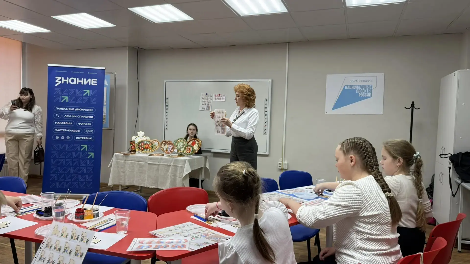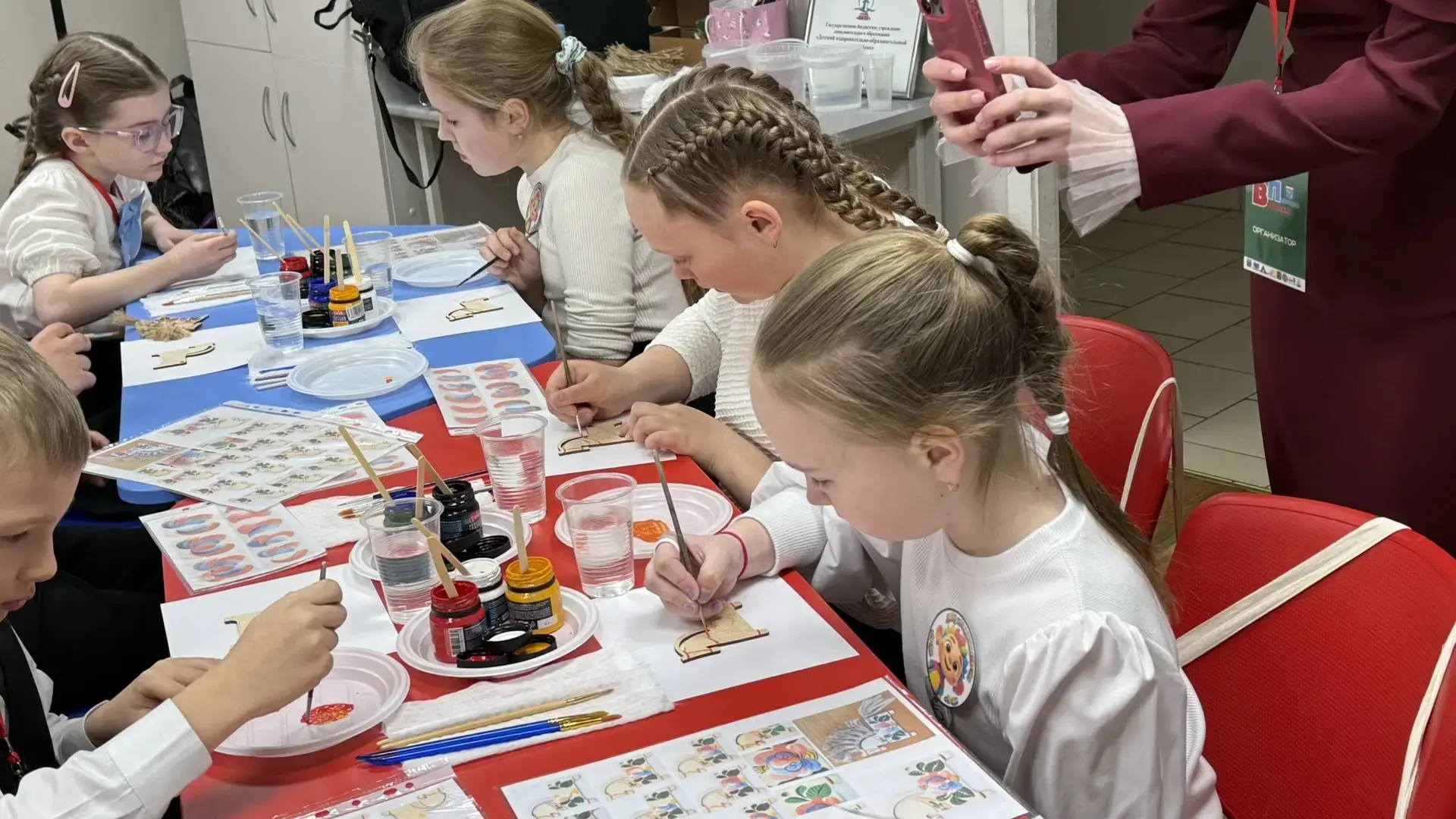 Ребята уже успели побывать на мастер‑классе по Волховской росписи — познакомились с уникальным народным промыслом и попробовали свои силы в создании традиционных узоров.