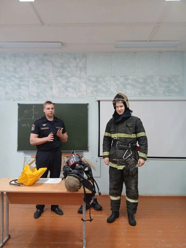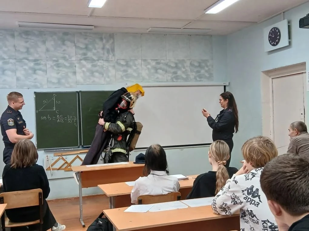 В ходе мероприятия ученикам продемонстрировали боевую одежду пожарного - ребята смогли увидеть экипировку вблизи и узнать о её защитных свойствах.