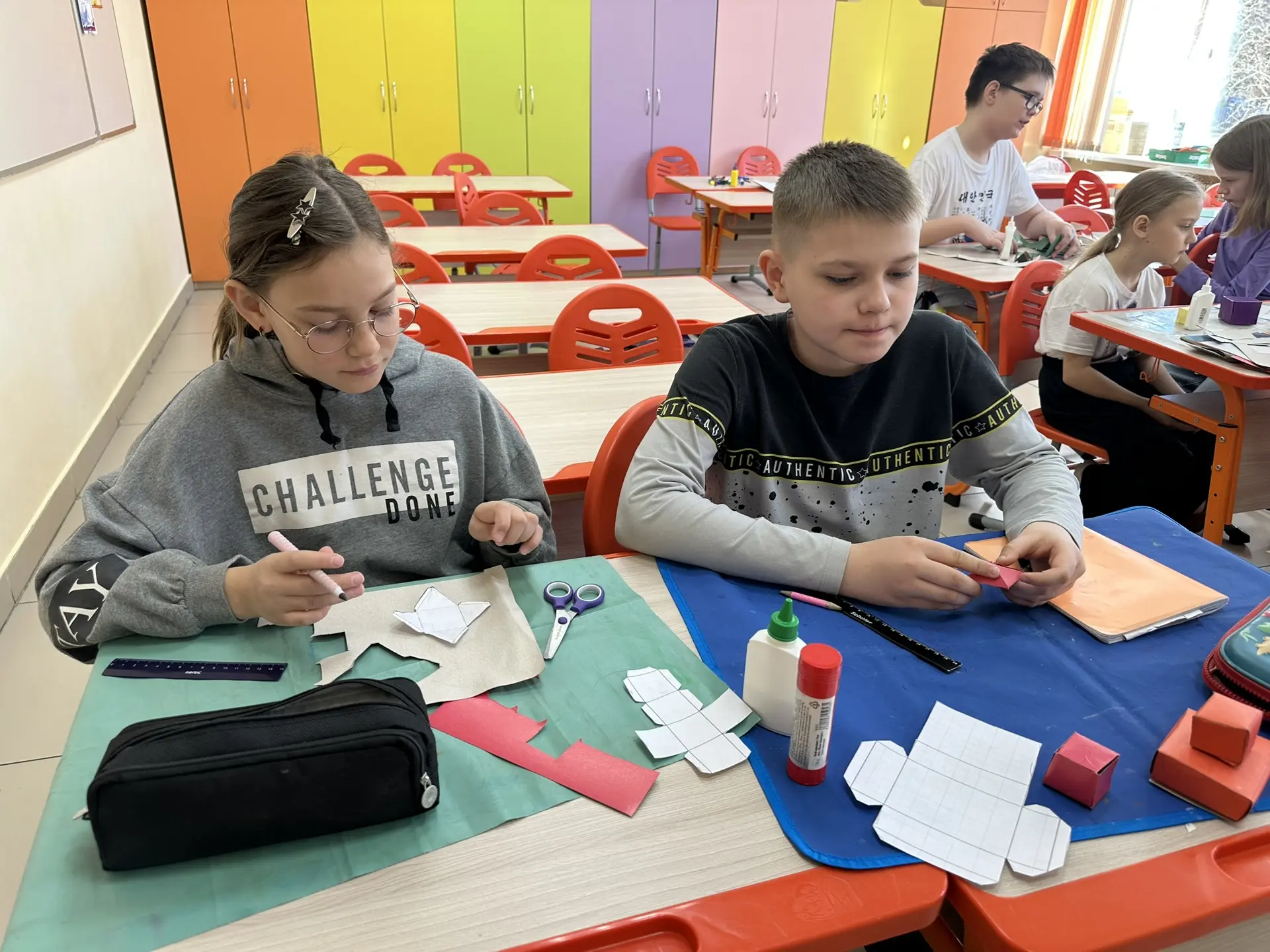 🔺▪️🔹В дни весенних каникул продолжил свою работу кружок « Занимательной математики» у учащихся 3 «В» класса. На занятиях ребята конструировали объемные геометрические фигуры , из которых потом создали «Город своей мечты», очень похожий на наш Сосновый Бор.