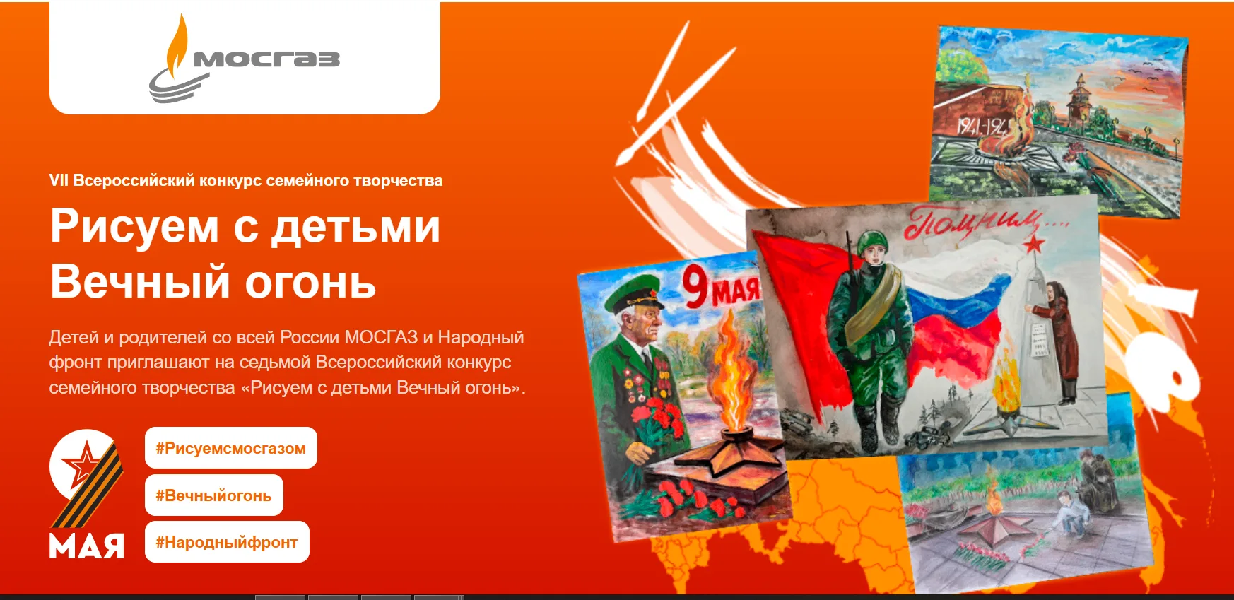 В рамках акции «Вечный огонь в нашем сердце» Народный Фронт совместно с Акционерным обществом «МОСГАЗ» с 20 апреля по 9 мая 2026 г. проводят VII Всероссийский конкурс семейного творчества «Рисуем с детьми Вечный огонь». Конкурс проводится ежегодно с 2020 года и объединил более 160 тысяч семей из всех 89 регионов России. Указом Президента Российской Федерации Владимира Владимировича Путина 2026 год объявлен Годом единства народов России. Как неоднократно подчеркивал Владимир Путин, именно единство народа — это главнейшее условие побед нашей Родины. Конкурс «Рисуем с детьми Вечный огонь» — это уникальная площадка, позволяющая почтить память защитников Отечества, сражавшихся в разные исторические периоды за Родину, укрепить связь поколений и отдать дань уважения героям великой истории России. Конкурсные работы принимаются в социальной сети «ВКонтакте» и оцениваются по пяти номинациям в различных техниках художественного мастерства (рисунок, коллаж, поделка, компьютерная графика и анимация, а также видеоролики об истории создания работы). Победители конкурса примут участие в торжественной церемонии профилактики Вечного огня на мемориале «Могила Неизвестного Солдата» в Александровском саду, а призёры получат дипломы и ценные призы. Специальные подарки будут вручены наиболее активным образовательным учреждениям и авторам самых запомнившихся работ. Информация о конкурсе размещена на официальном сайте проекта: https://www.mos-gaz.ru/special/risuyem-s-detmi-vechnyy-ogon-2026.