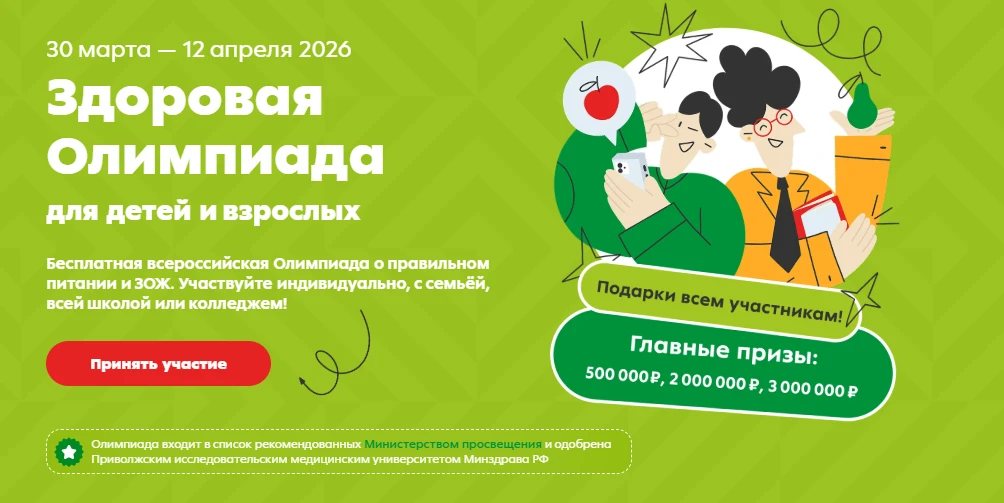 Приглашаем вас принять участие в "Здоровой Олимпиаде". Регистрация и прохождение олимпиады на сайте: https://здоровая-олимпиада.рф