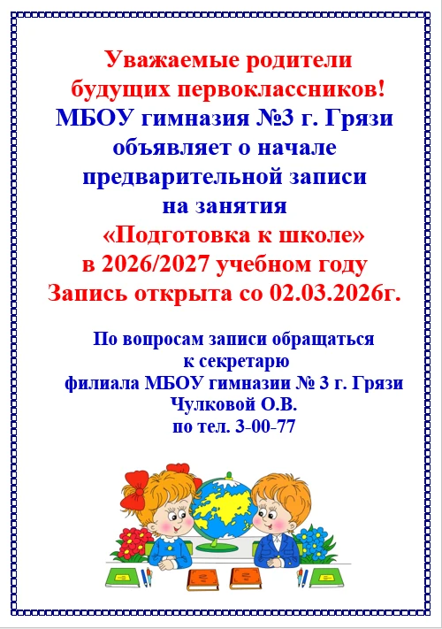 Сбор проходит в основном здании гимназии (г. Грязи, ул. Авиационная, д. 39) и её филиале (г. Грязи, ул. М. Расковой, д. 30). Для удобства публикуем список необходмых вещей и предметов.