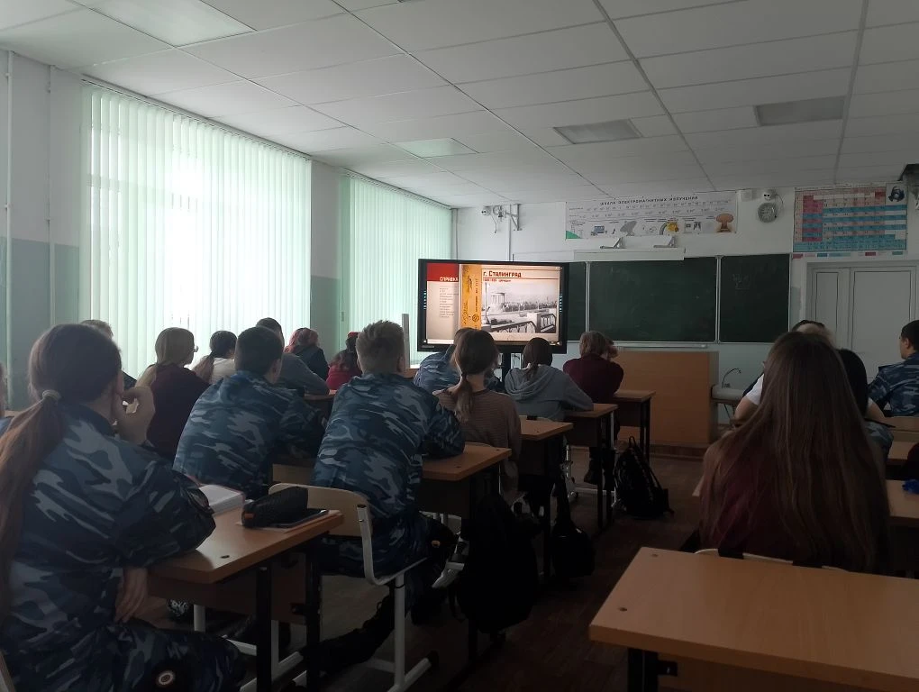 В преддверии памятной даты, в МБОУ гимназии 3, советник директора по воспитанию и взаимодействию с детскими общественными объединениями организовала для ребят кинолекторий «Сталинград» .