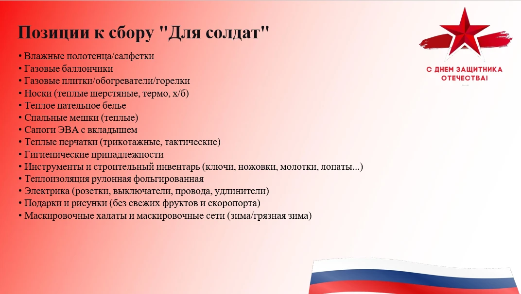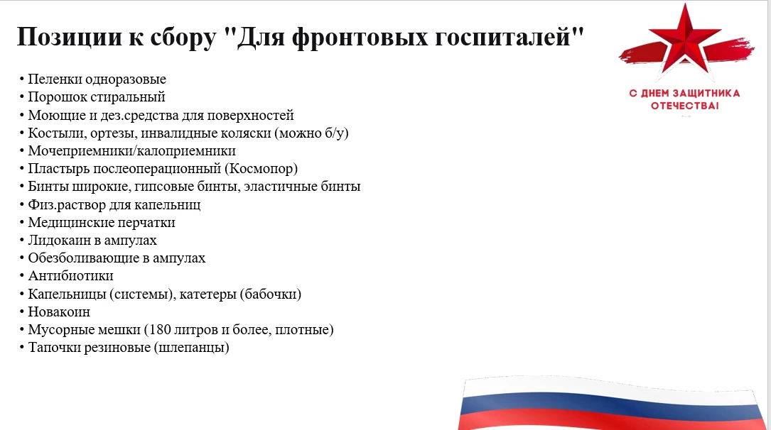 Мы присоединяемся к патриотической инициативе, предложенной губернатором Игорем Георгиевичем Артамоновым - масштабной акции по сбору гуманитарной помощи. Собранный гуманитарный груз будет передан военным волонтерам и военнослужащим, дислоцированным на передовой.